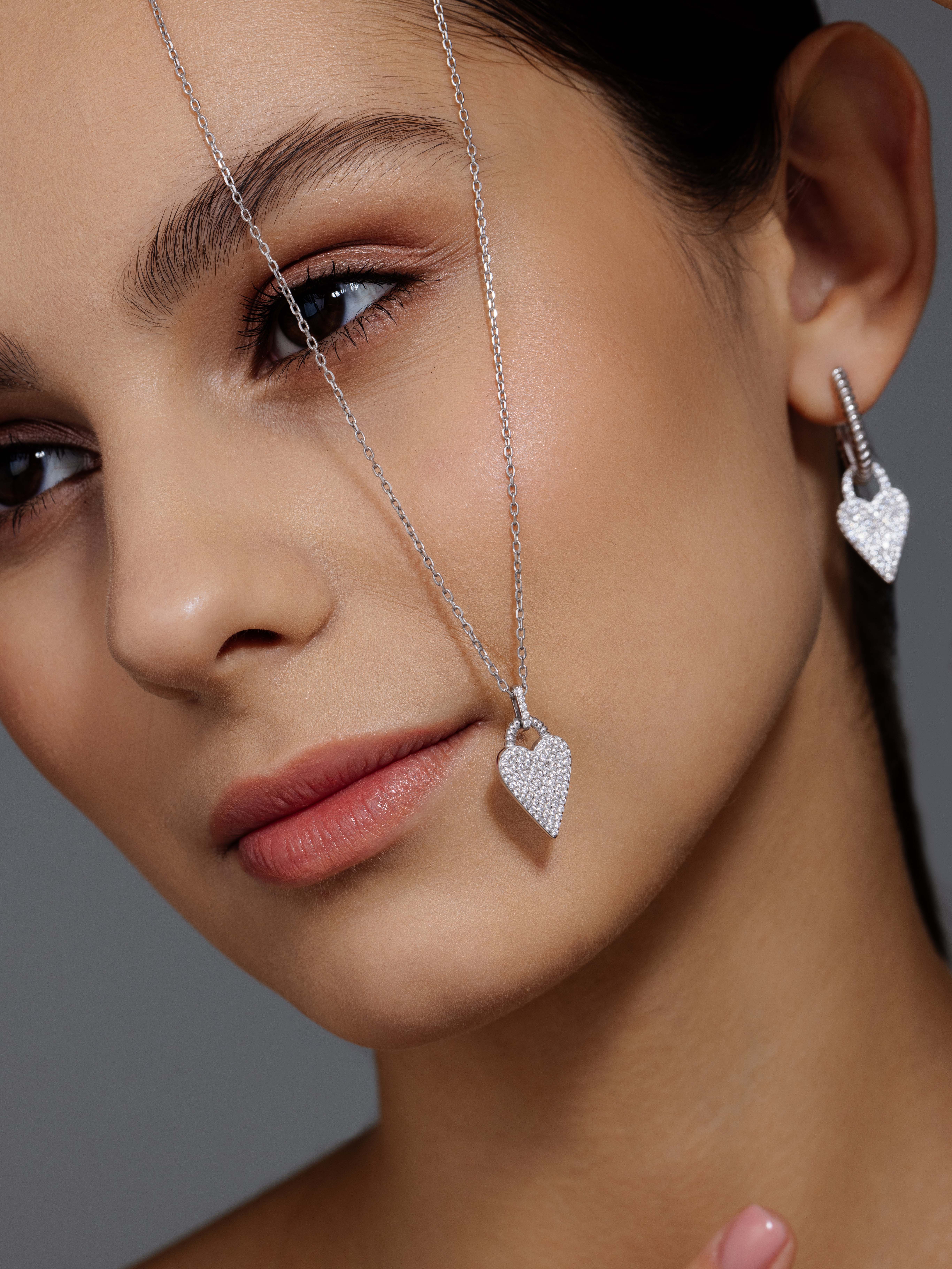 Колье "Сердце" с фианитами из серебра 925 пробы