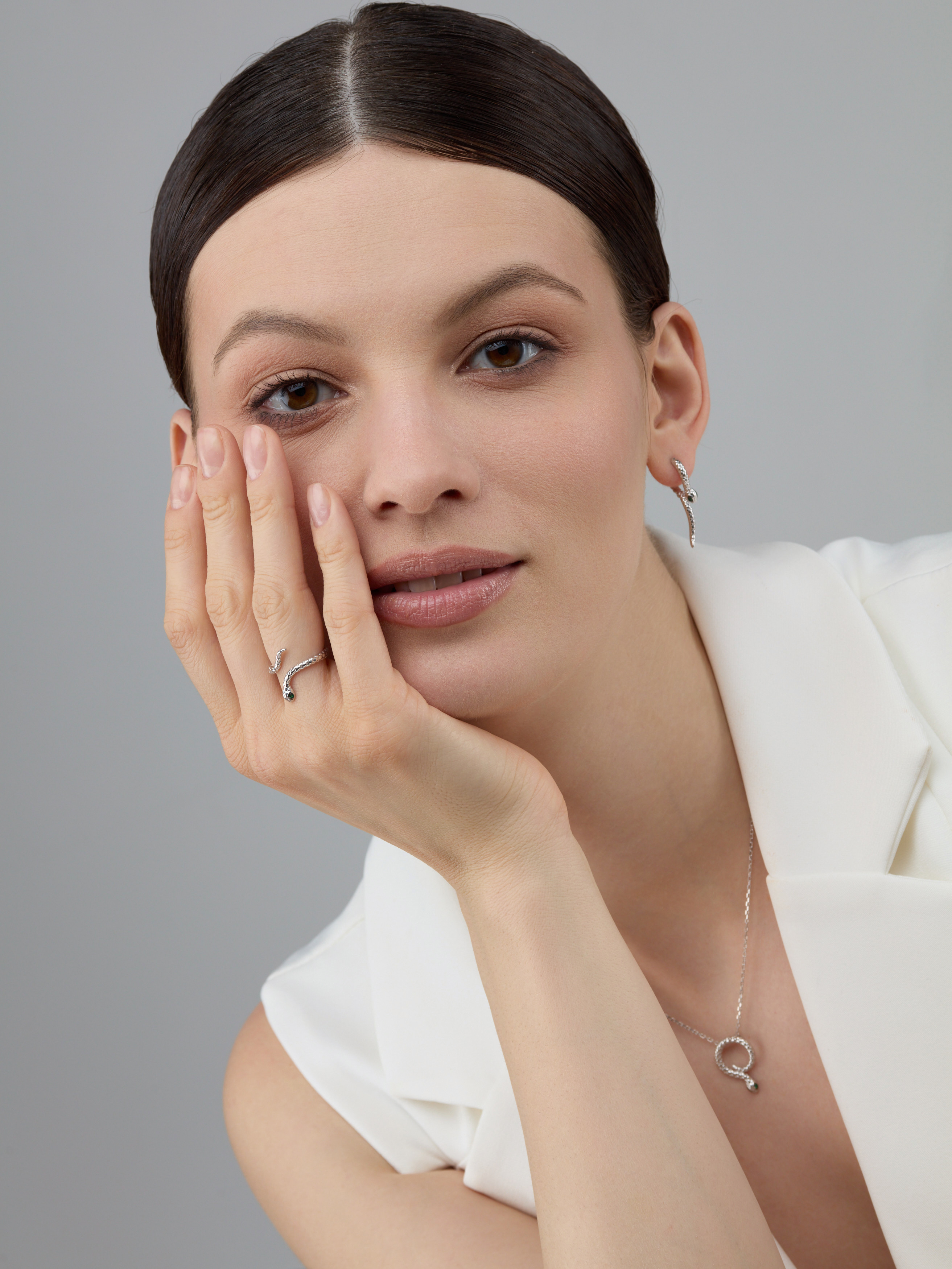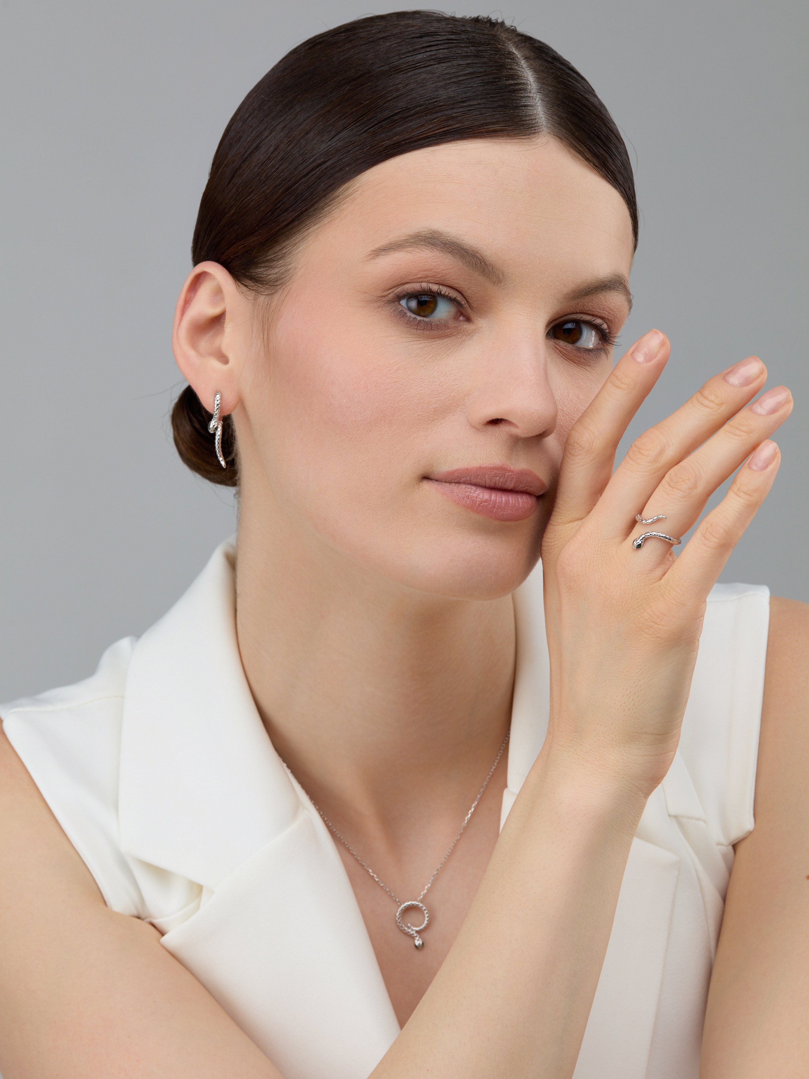 Колье "Змея" с фианитами из серебра 925 пробы арт. 06-4318/0КЦ4-17