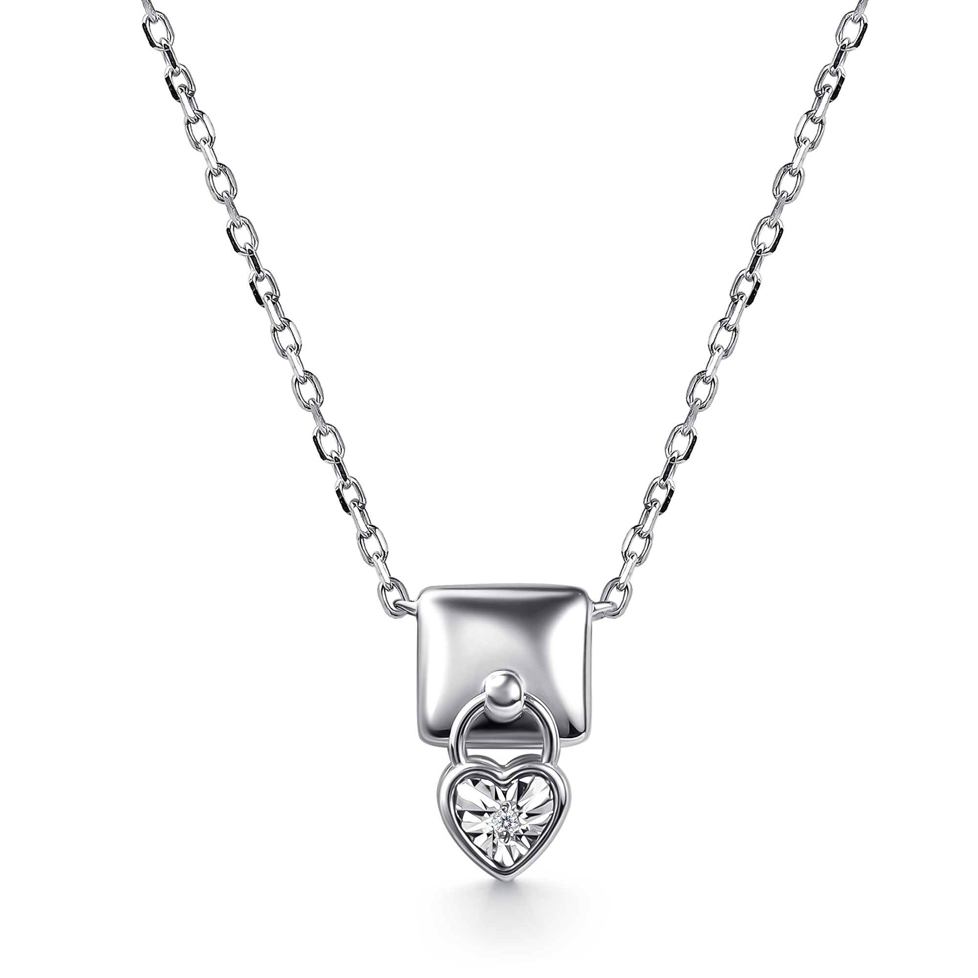 Колье "Сердце" с бриллиантом из серебра 925 пробы