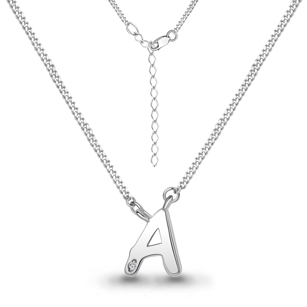 Колье "Буква А" с бриллиантом из серебра 925 пробы