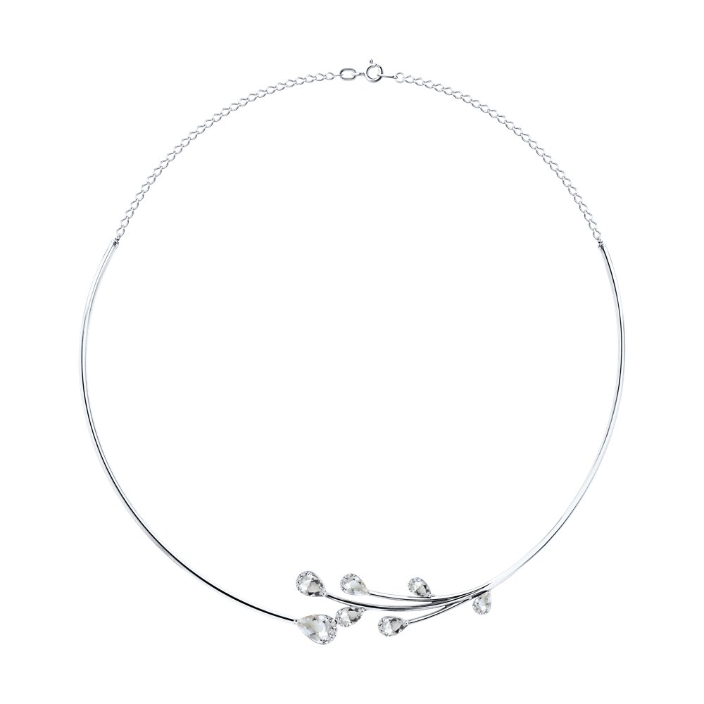 Колье с горным хрусталем и бриллиантами из белого золота 585 пробы арт. 77-00041-3