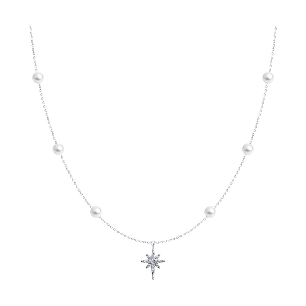 Колье "Звезда" с жемчугом и бриллиантами из белого золота 585 пробы арт. 79-70020-3