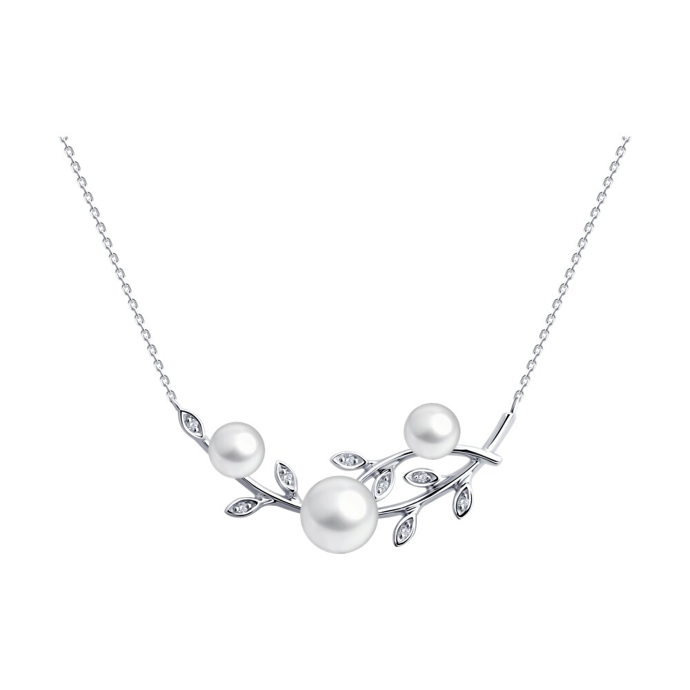 Колье "Ветвь" с жемчугом и бриллиантами из белого золота 585 пробы арт. 79-70021-3