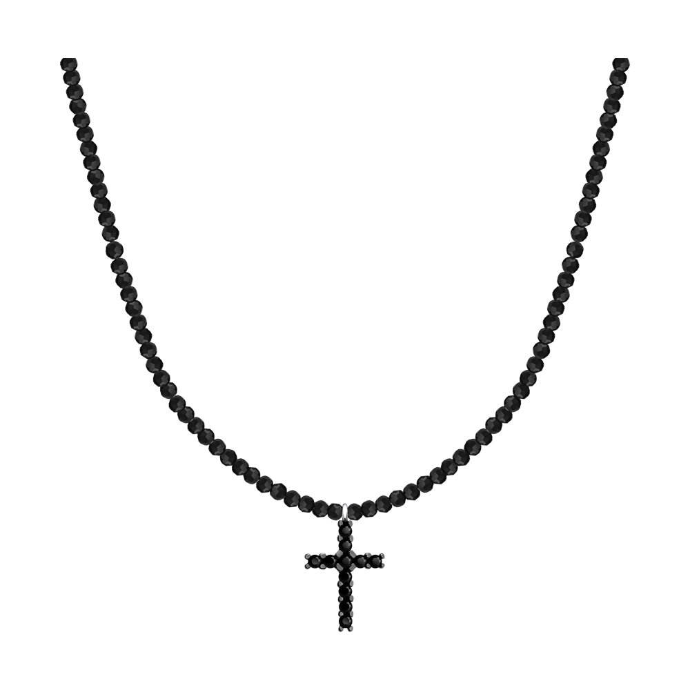 Колье "Крест" со шпинелью и фианитами из серебра 925 пробы