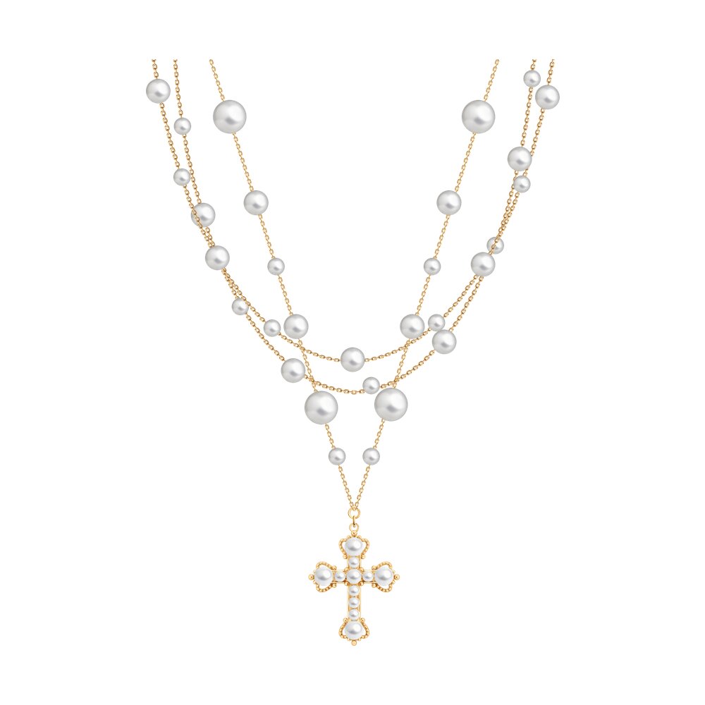 Колье "Крест" с жемчугом из серебра 925 пробы с позолотой арт. 93070152