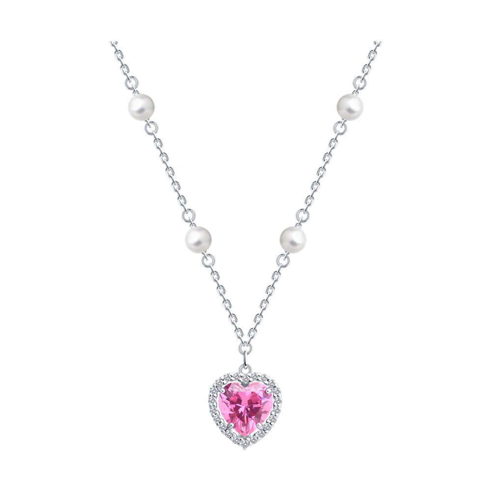 Колье "Сердце" с фианитами и жемчугом из серебра 925 пробы