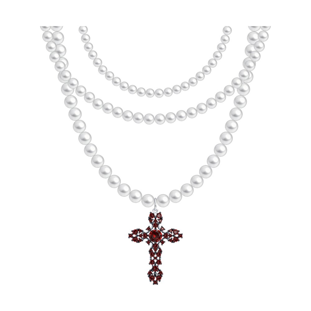 Колье "Крест" с жемчугом и фианитами из серебра 925 пробы арт. 94071399