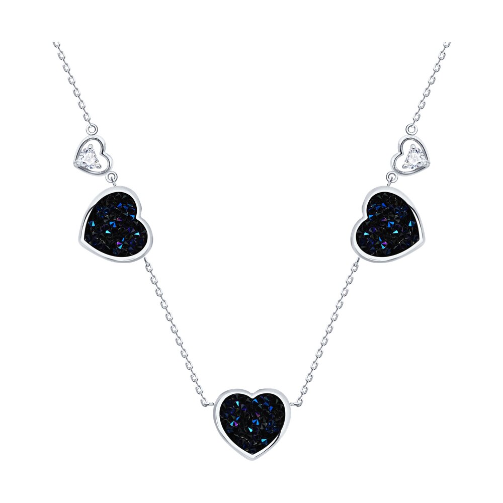 Колье "Сердца" с кристальной тканью и фианитами из серебра 925 пробы арт. 94071492