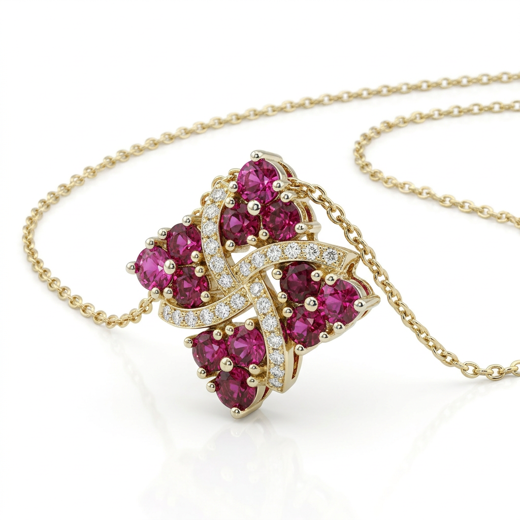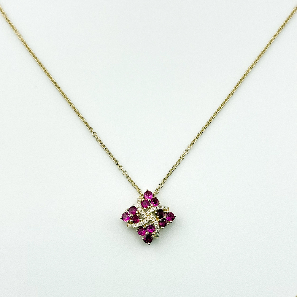 Колье "Цветок" с рубинами и бриллиантами из желтого золота 585 пробы арт. CN33611-WD-RU-ML-YG