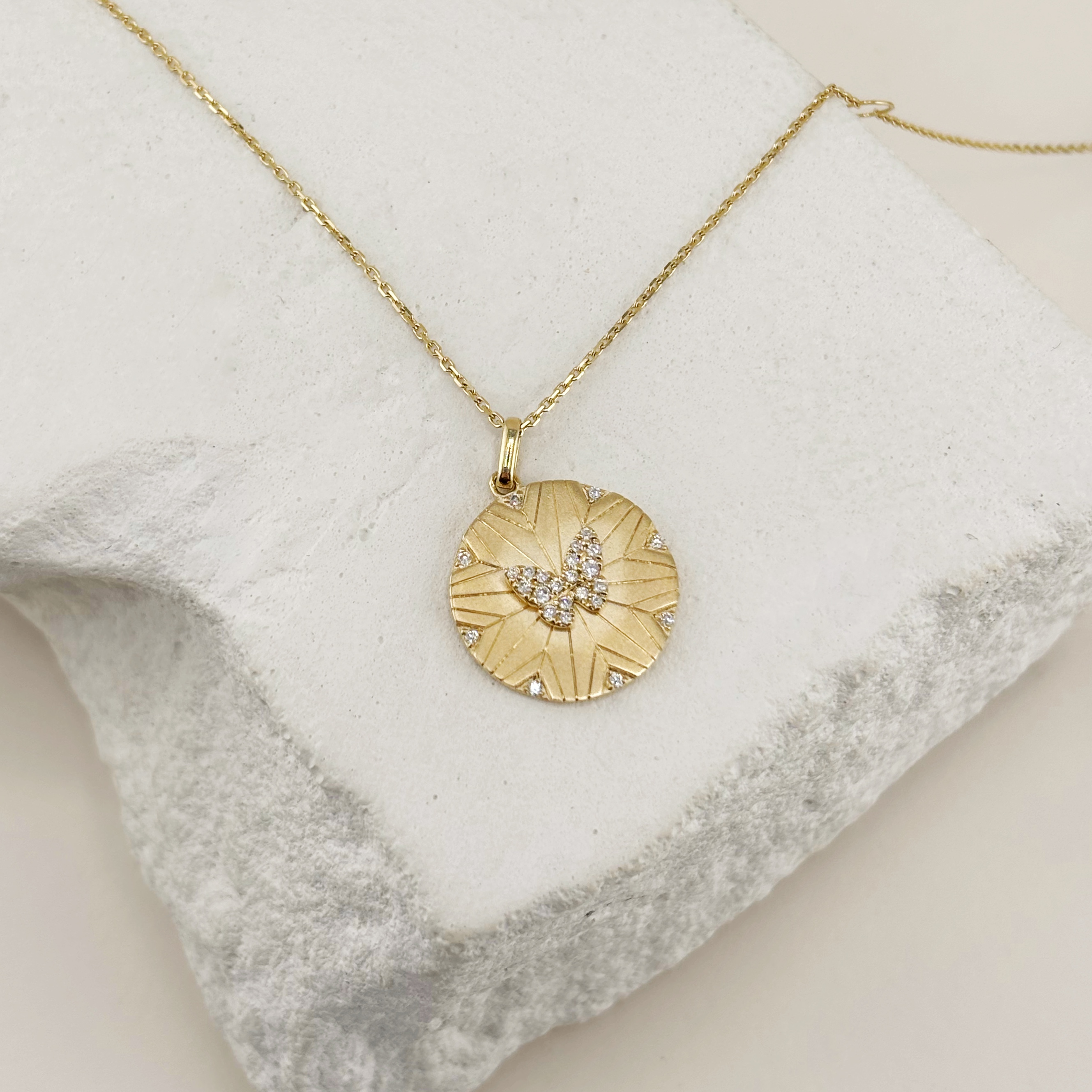 Колье "Бабочка" с бриллиантами из желтого золота 585 пробы арт. CN33786-1-YG