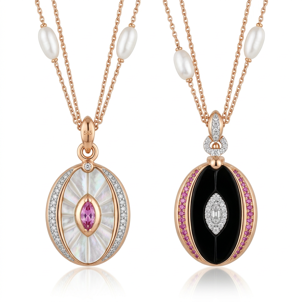 Колье с бриллиантами, сапфирами и перламутром из золота 585 пробы арт. CN34255-WD-PS-WSHL-BSHL-R