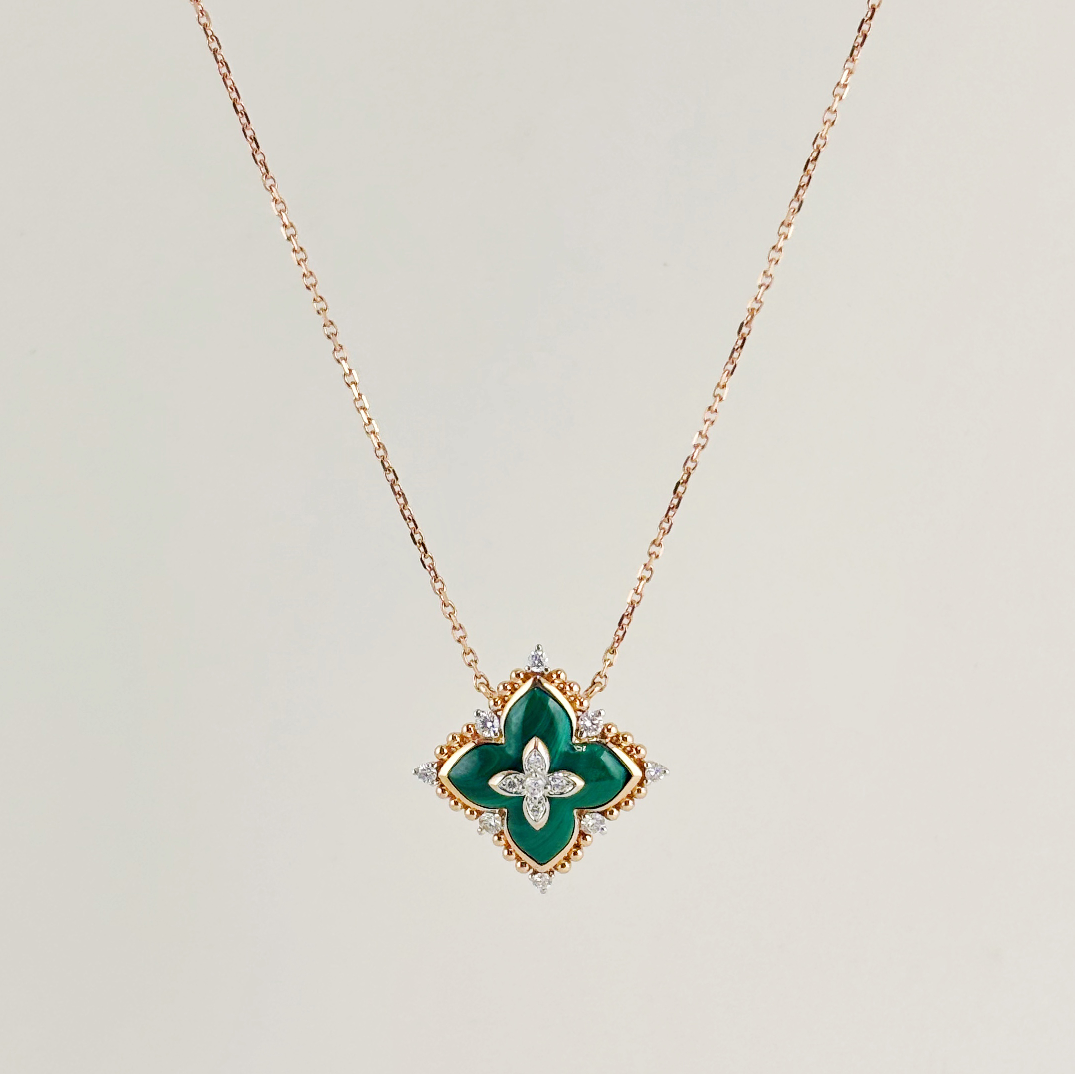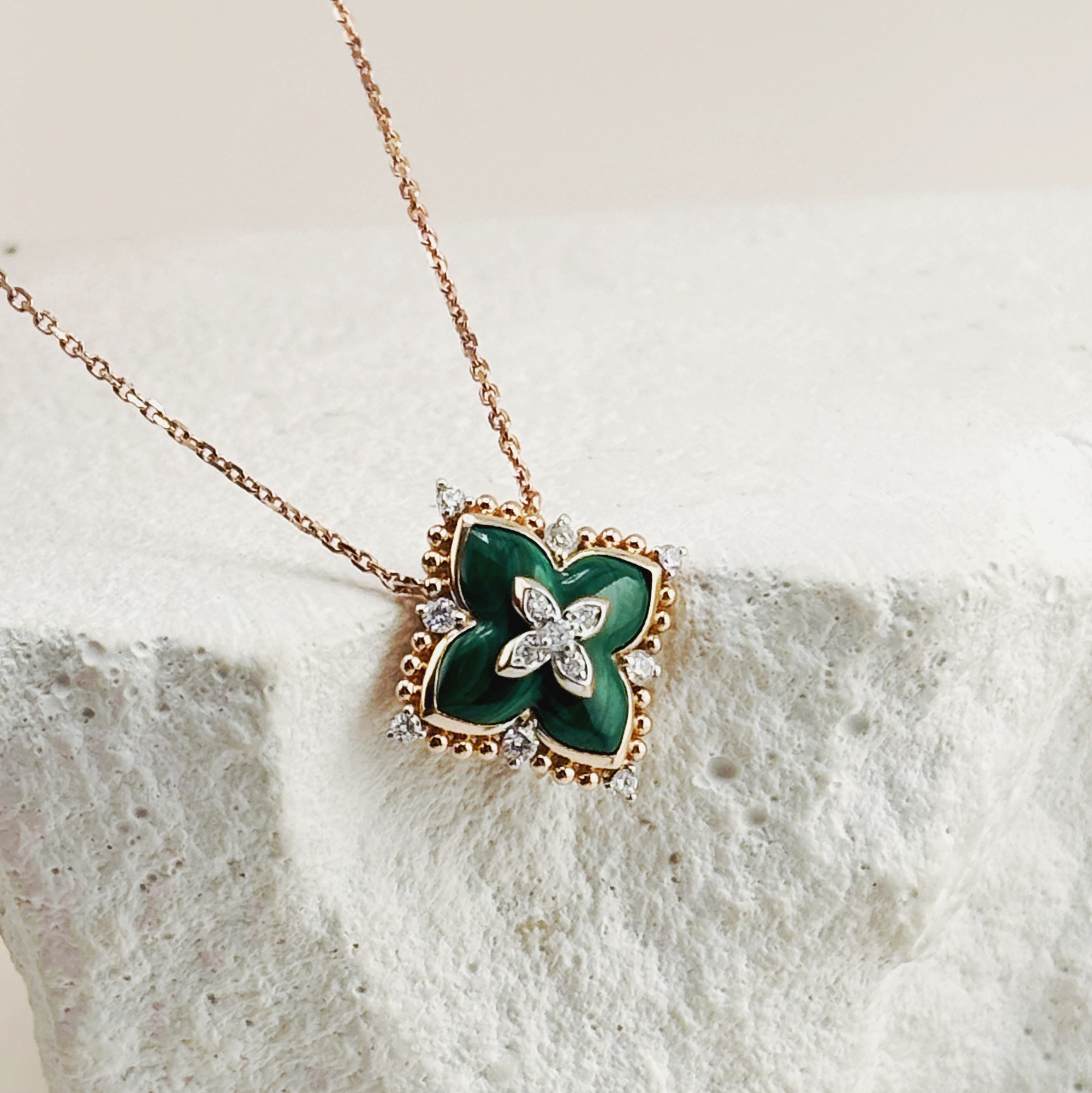 Колье "Цветок" с малахитом и бриллиантами из золота 585 пробы арт. CN34263-WD-MA-RG