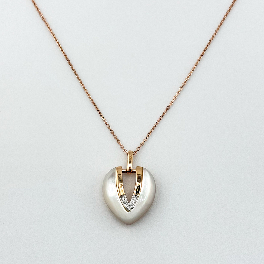 Колье "Сердце" с перламутром и бриллиантами из золота 585 пробы арт. CN34507-WD-WSHL-RG
