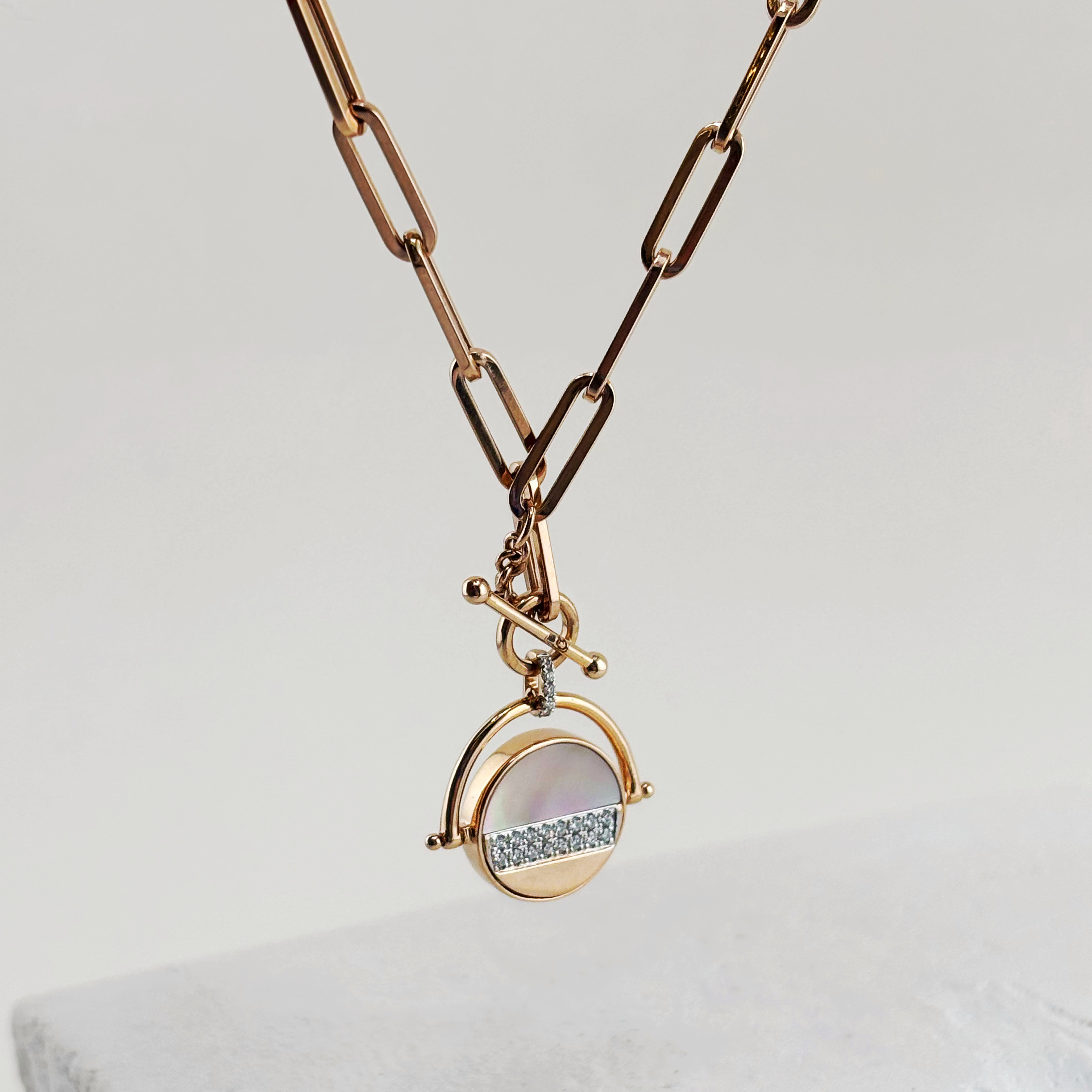 Колье с бриллиантами и перламутром из золота 585 пробы арт. CN34878-1-WD-PSHL-RG