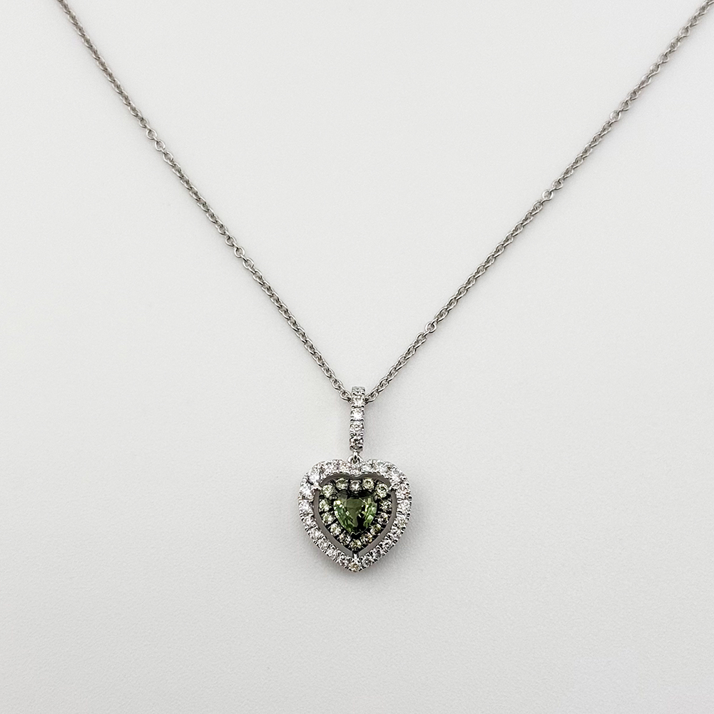 Колье "Сердце" с сапфирами и бриллиантами из белого золота 585 пробы арт. CN35600-5MM-WD-GS-ML