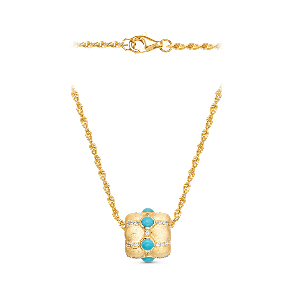 Колье с фианитами и бирюзой из серебра 925 пробы с позолотой арт. HPHT0057-N_TSP_TQ_YG