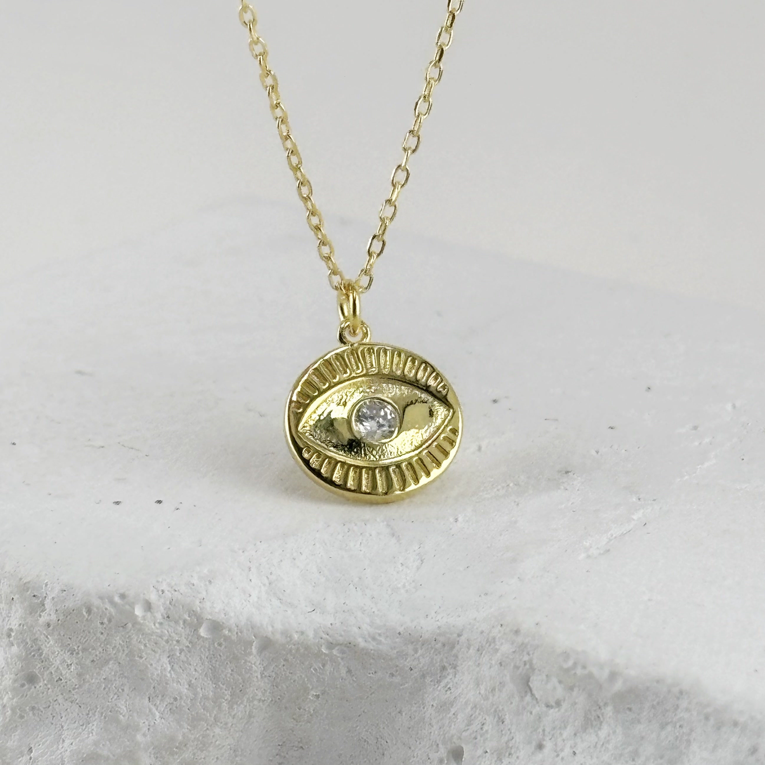 Колье "Глаз" с фианитами из серебра 925 пробы с позолотой арт. HSE0333