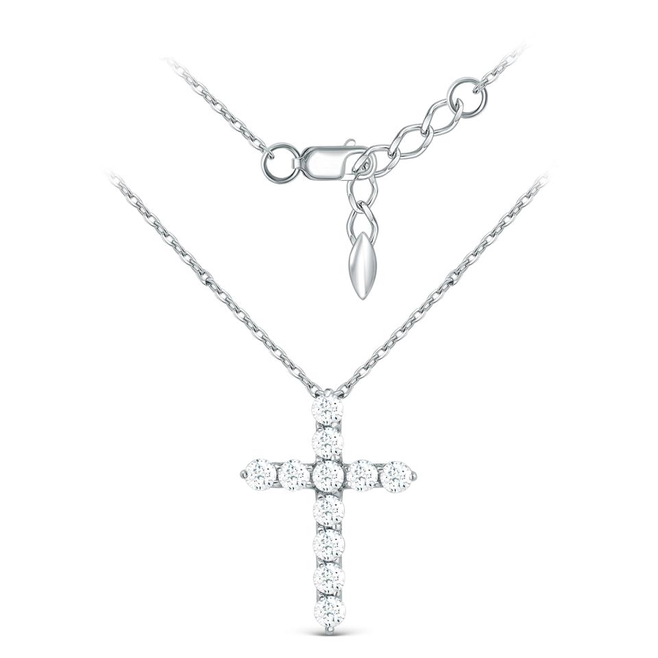 Колье "Крест" с фианитами из серебра 925 пробы