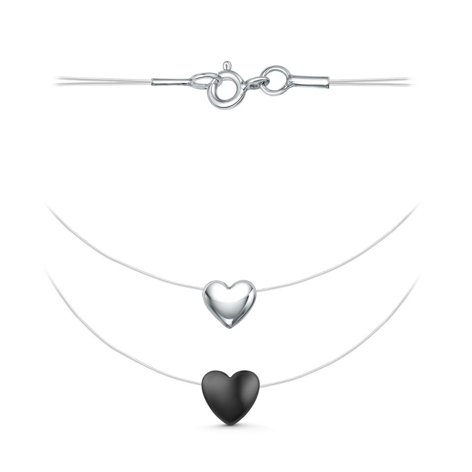Колье "Сердца" с гематитом из серебра 925 пробы