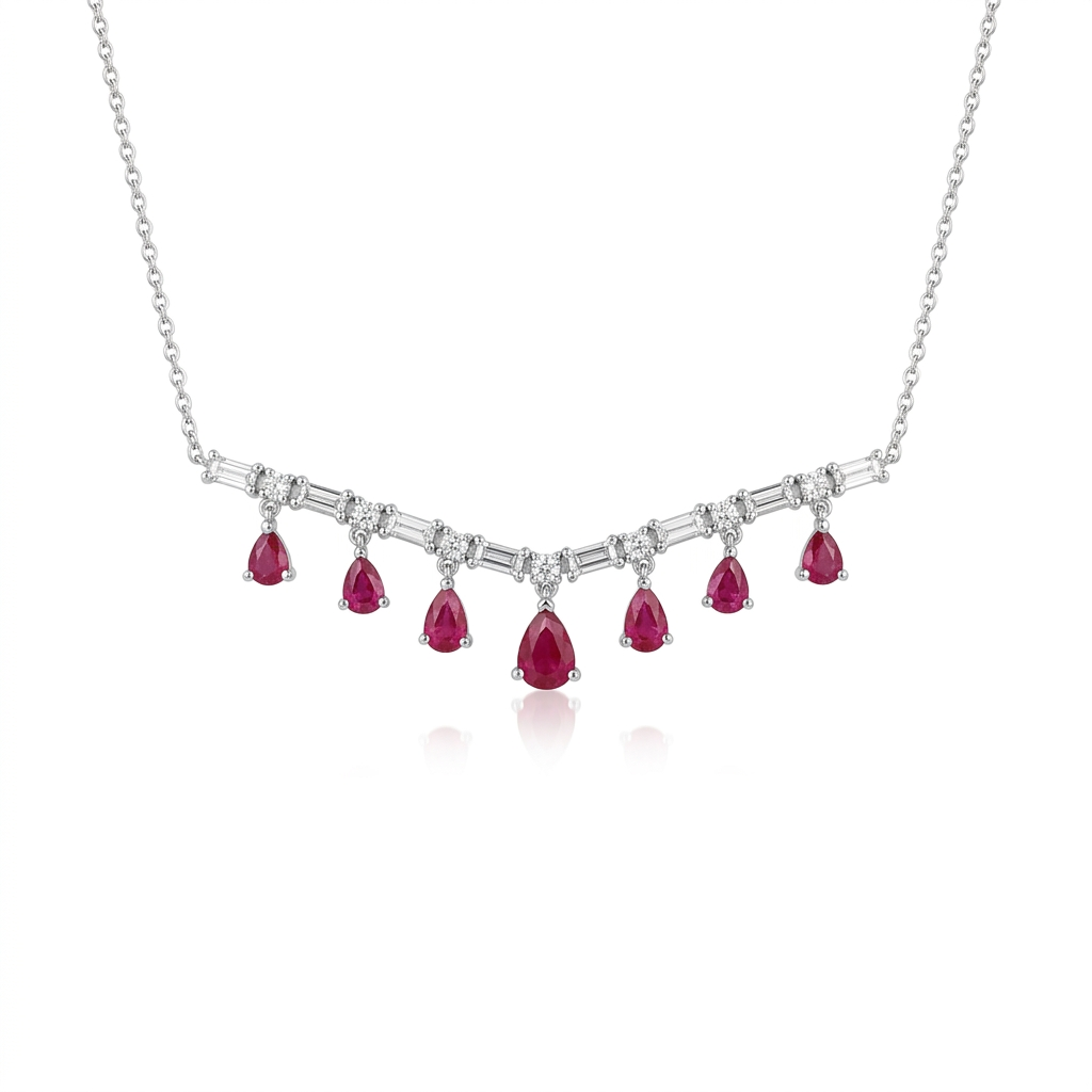 Колье с бриллиантами и рубинами из белого золота 585 пробы арт. MN21613-WD-RU-ML