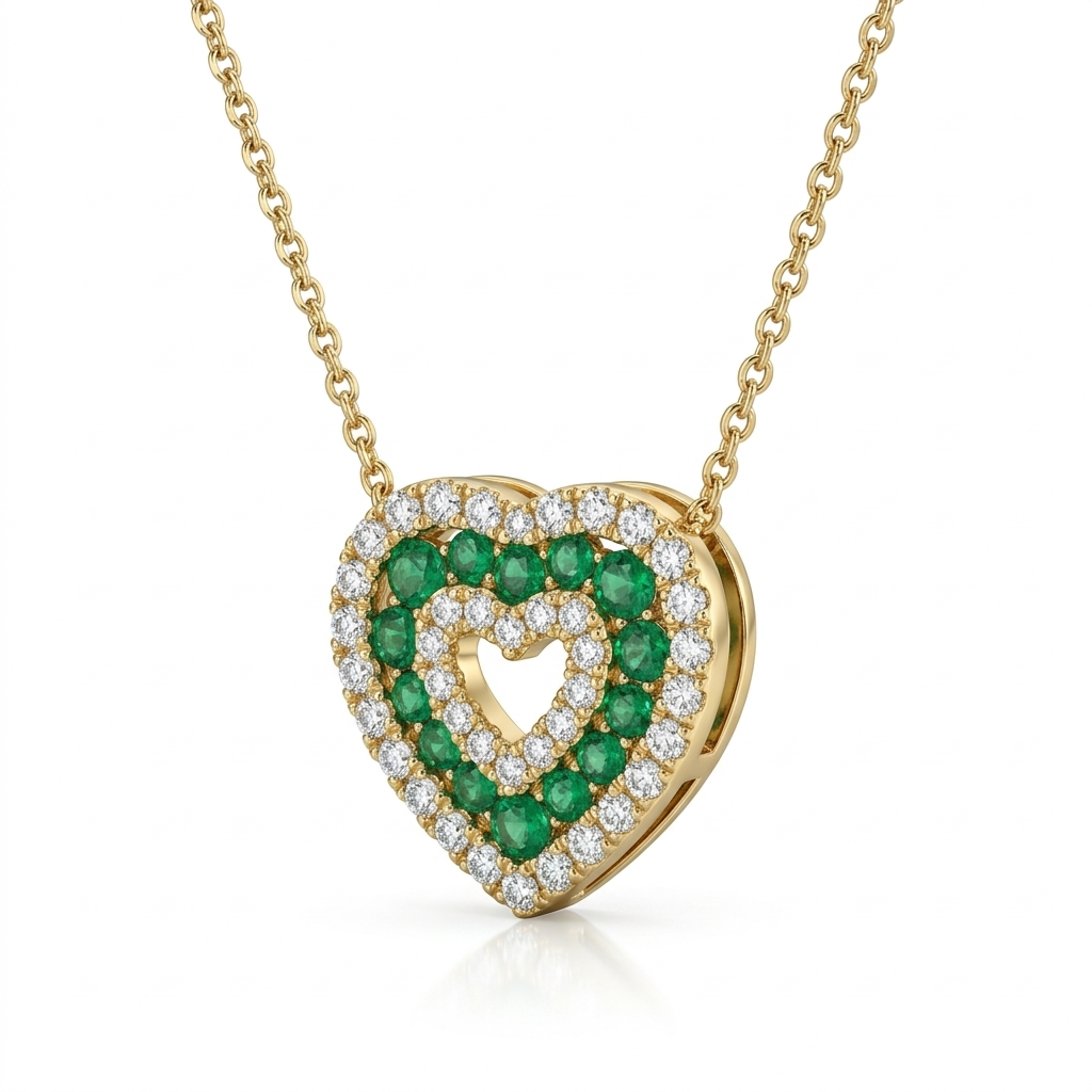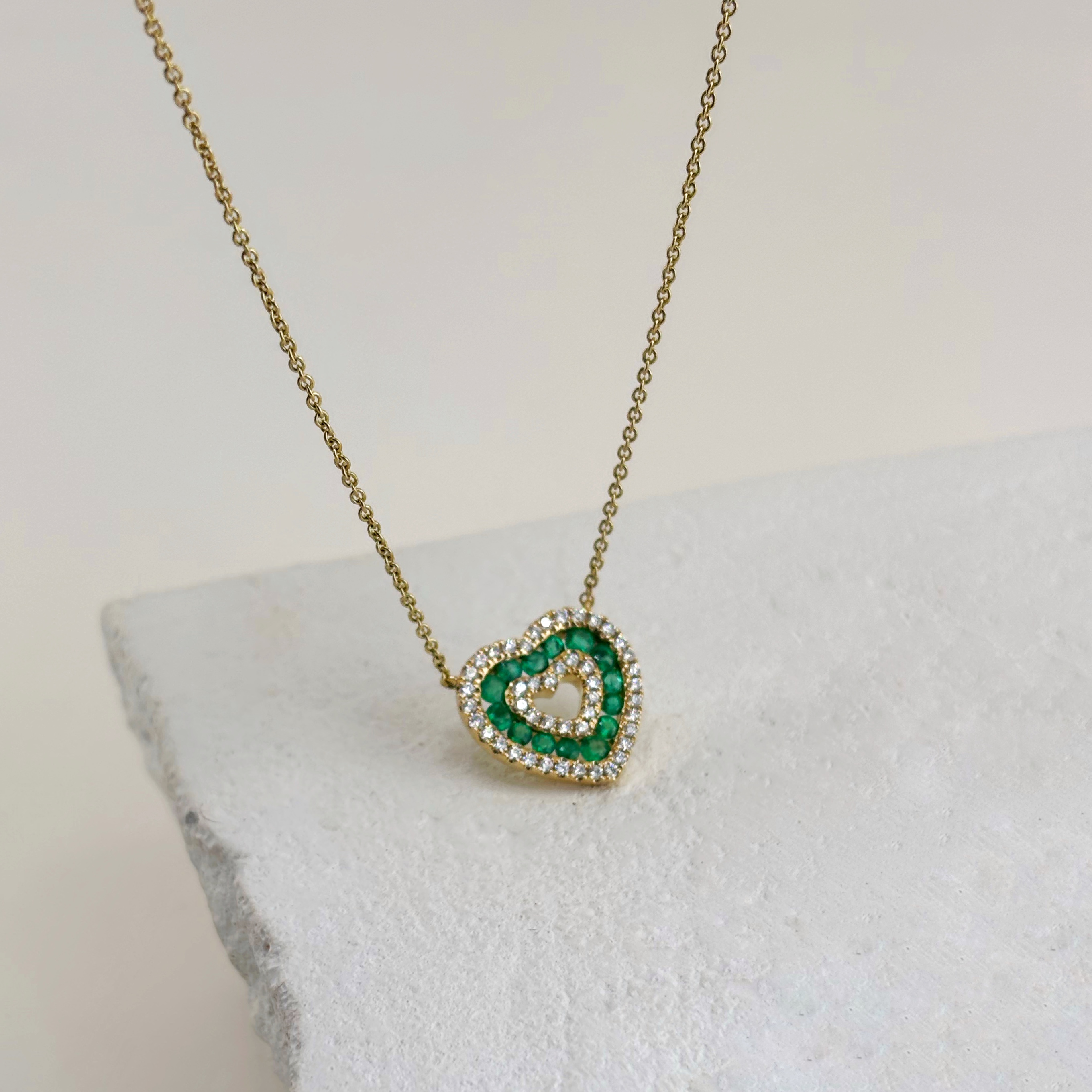 Колье "Сердце" с изумрудами и бриллиантами из желтого золота 585 пробы арт. MN22834-WD-EM-ML-YG