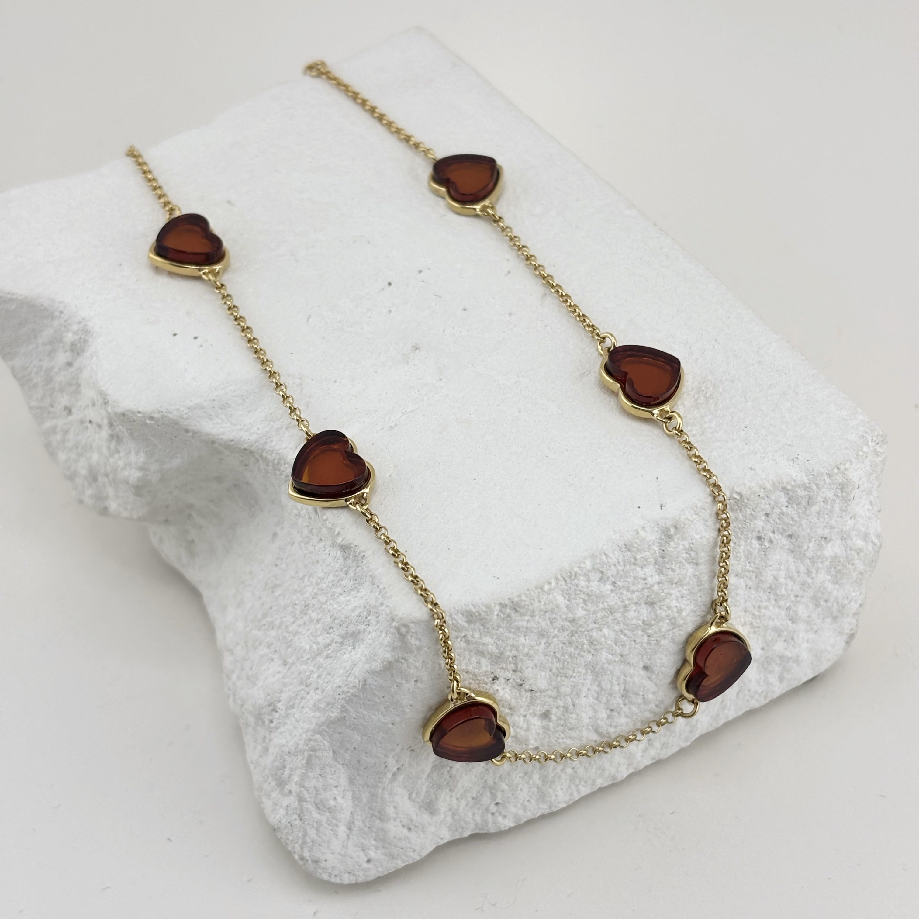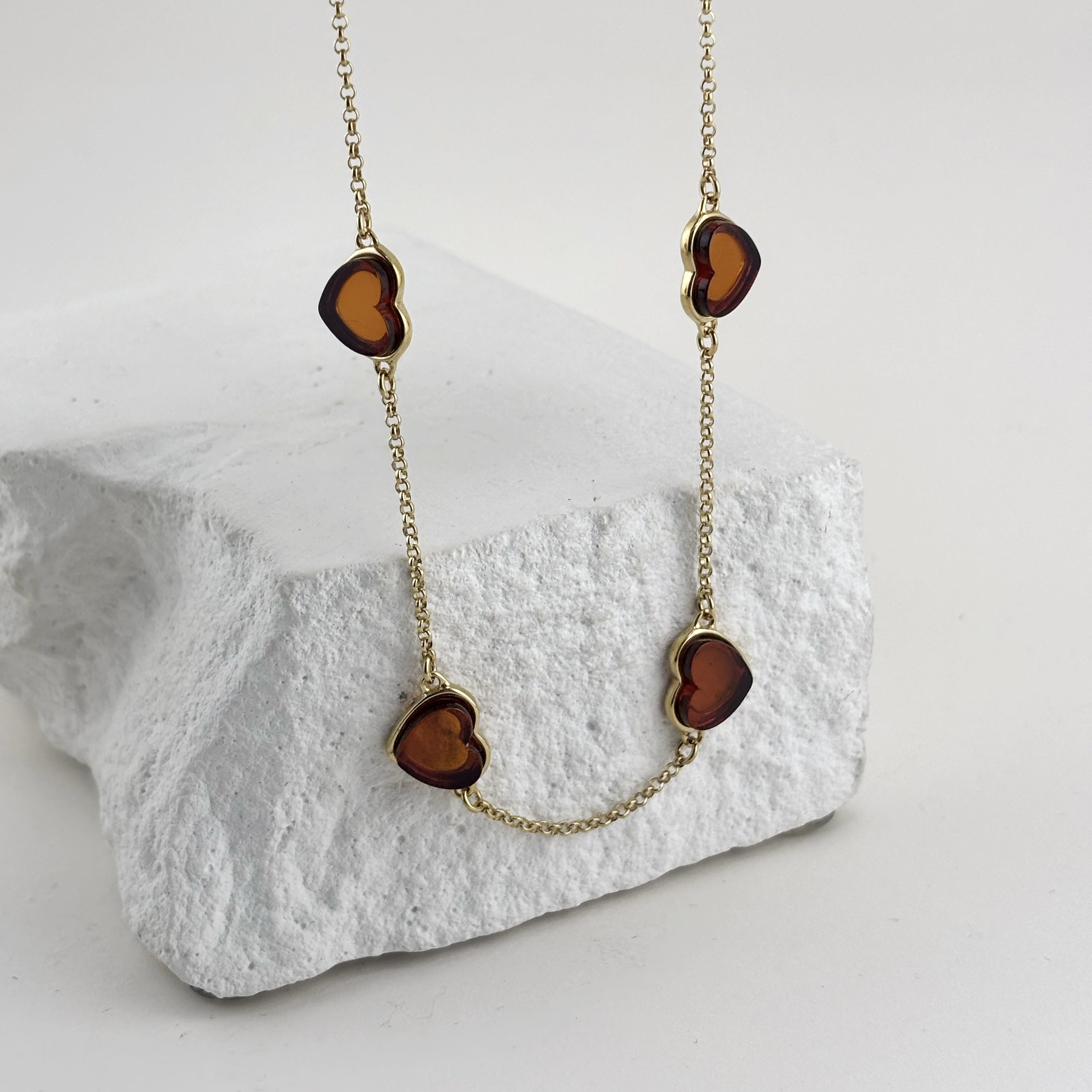 Колье "Сердца" с янтарем из серебра 925 пробы с позолотой арт. N9208ZK