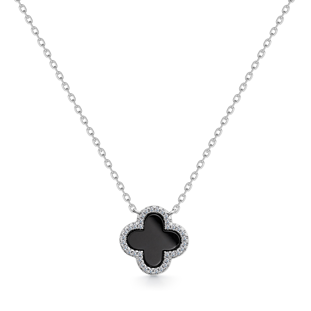 Колье "Клевер" с ониксом и фианитами из серебра 925 пробы