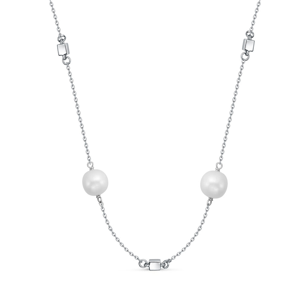 Колье с жемчугом и фианитами из серебра 925 пробы арт. NK326