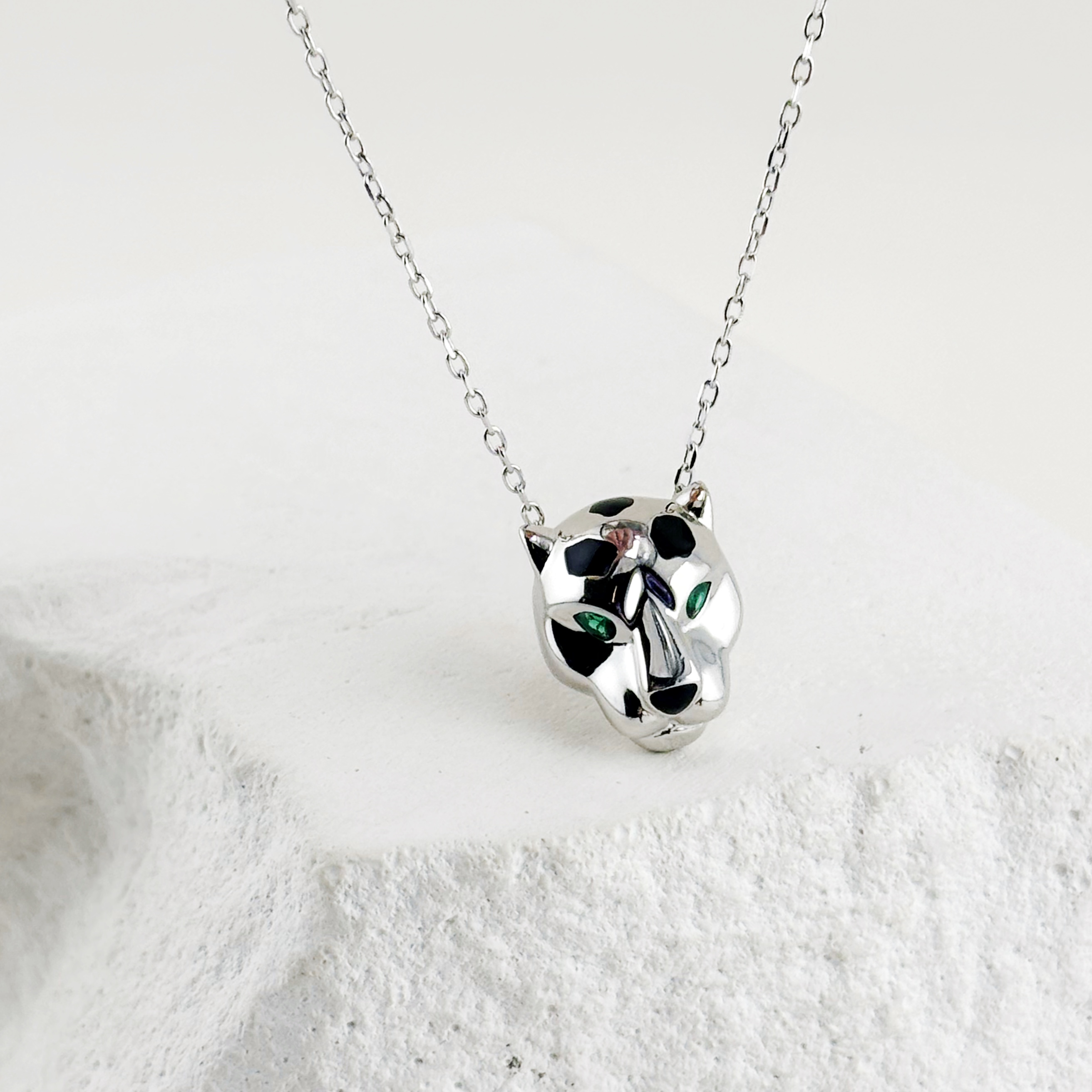 Колье "Пантера" с фианитами и эмалью из серебра 925 пробы арт. NK385