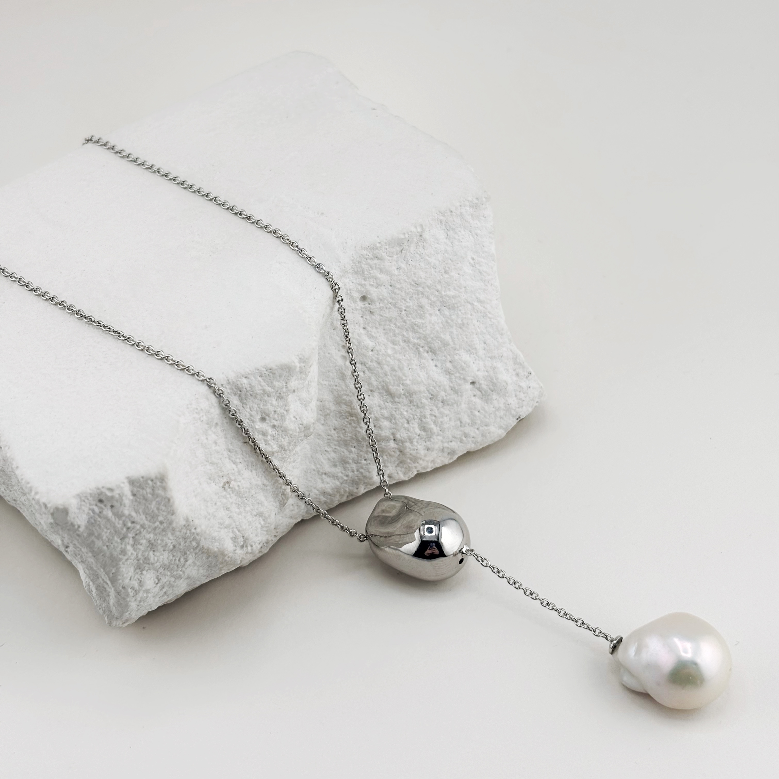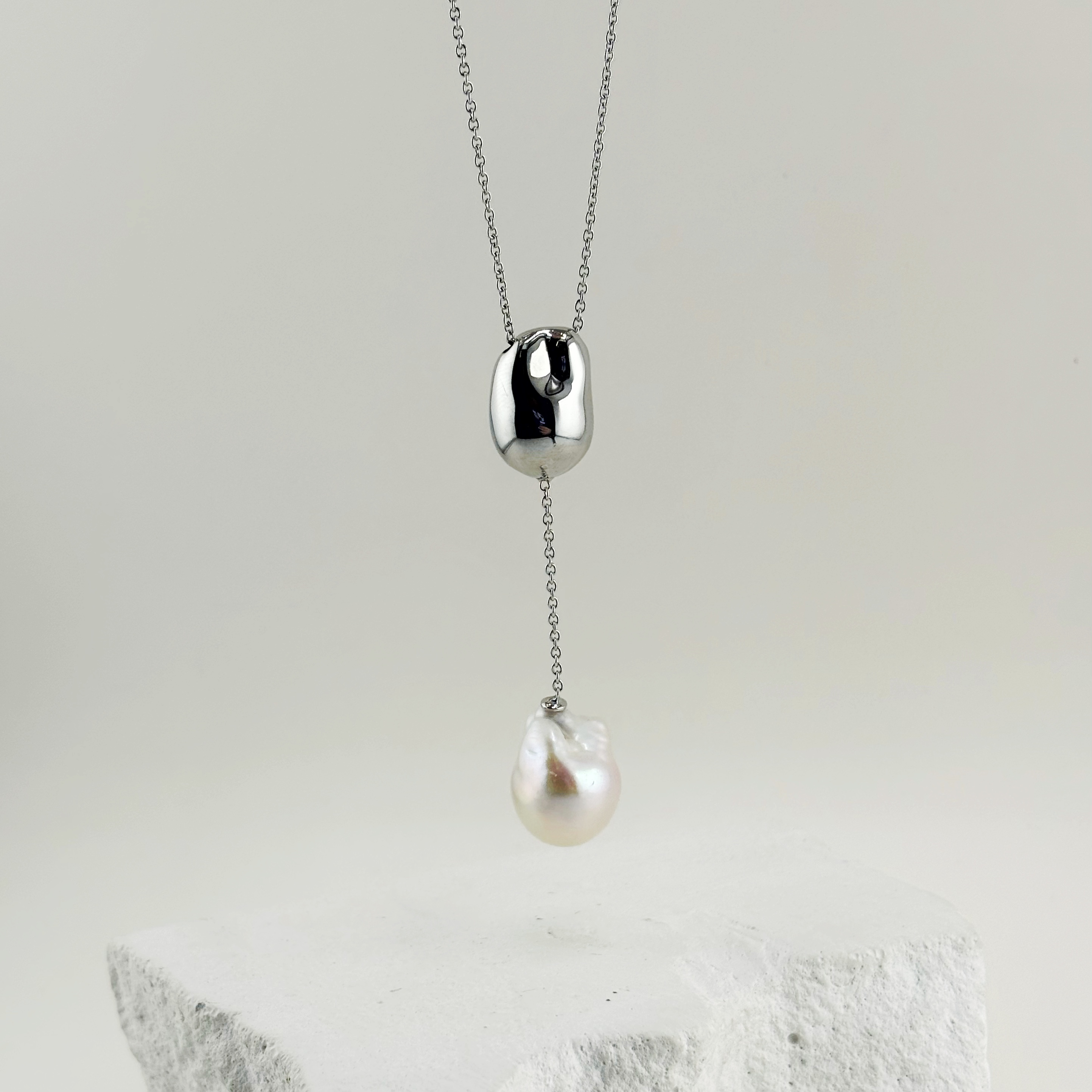 Колье с жемчугом и фианитом из серебра 925 пробы