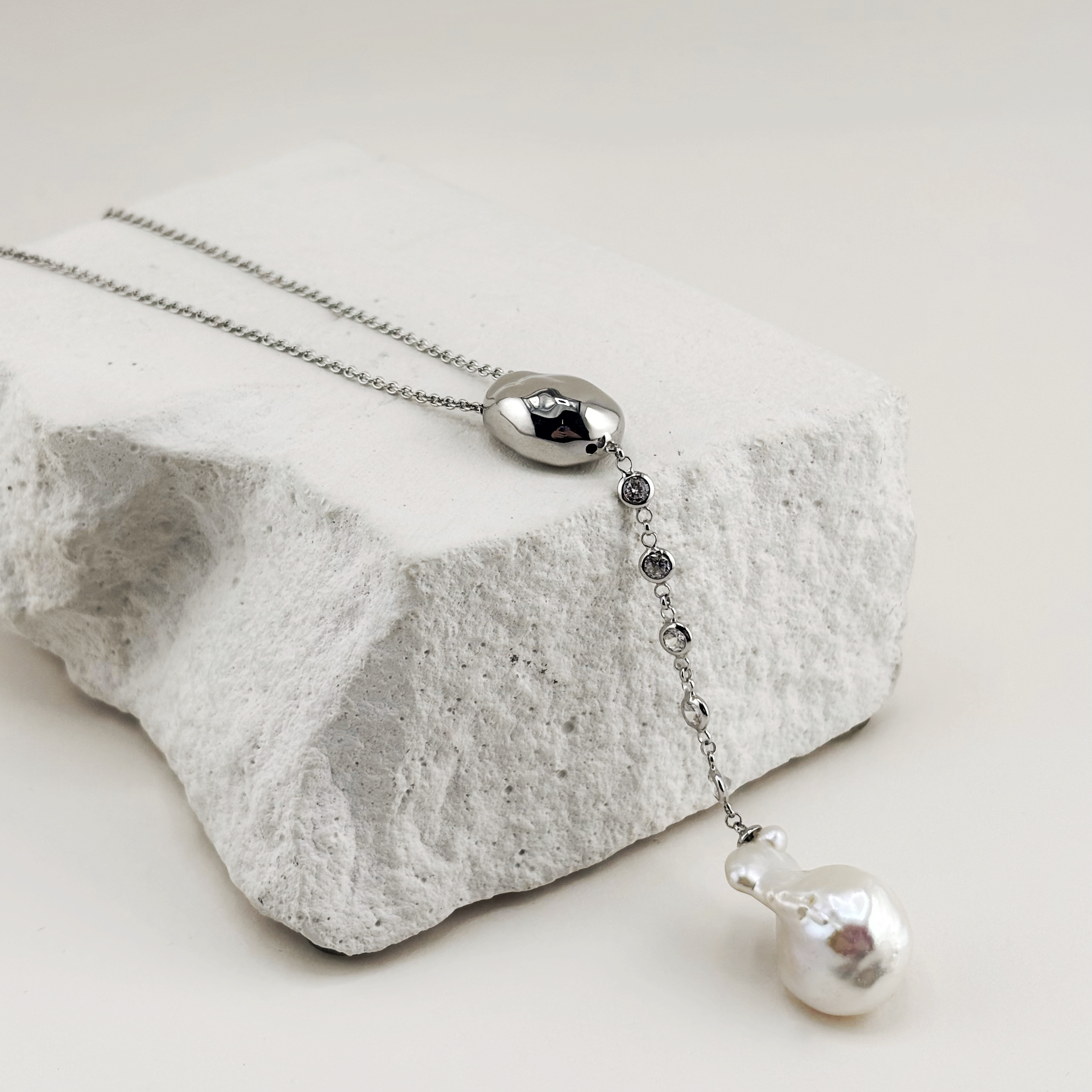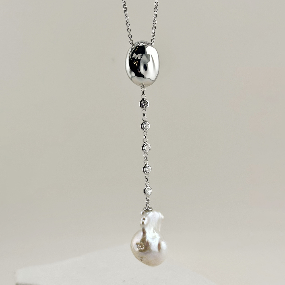 Колье с жемчугом и фианитами из серебра 925 пробы