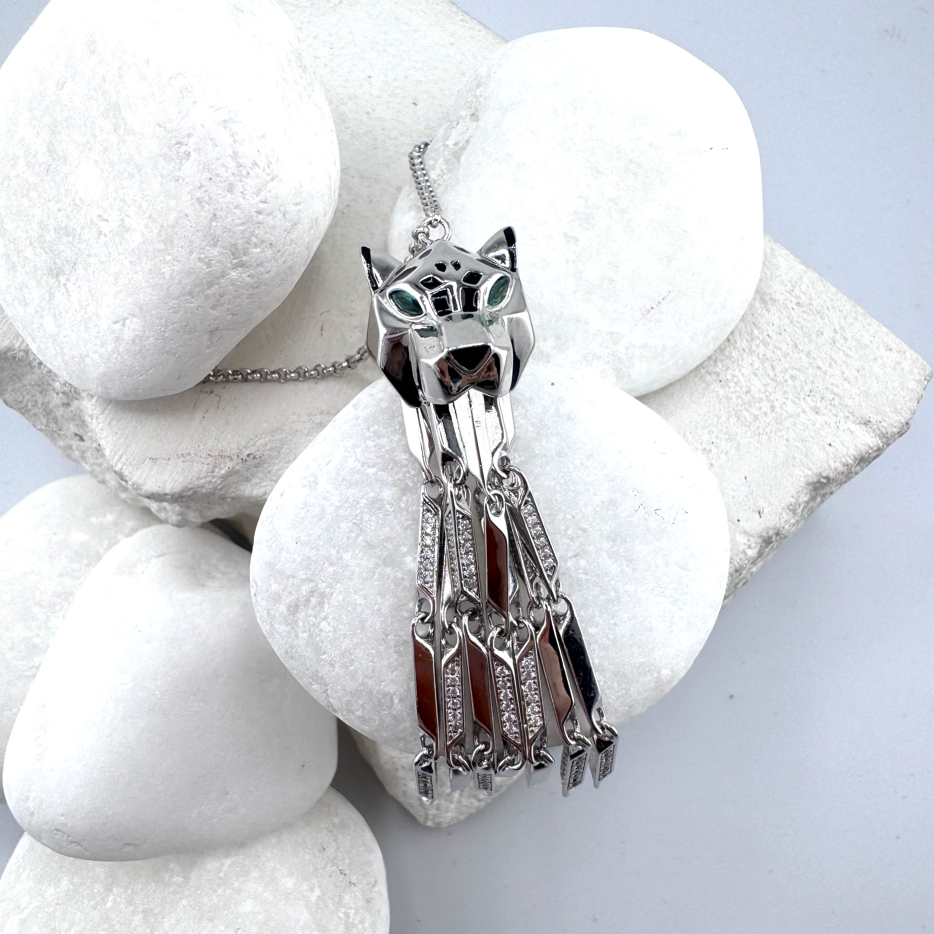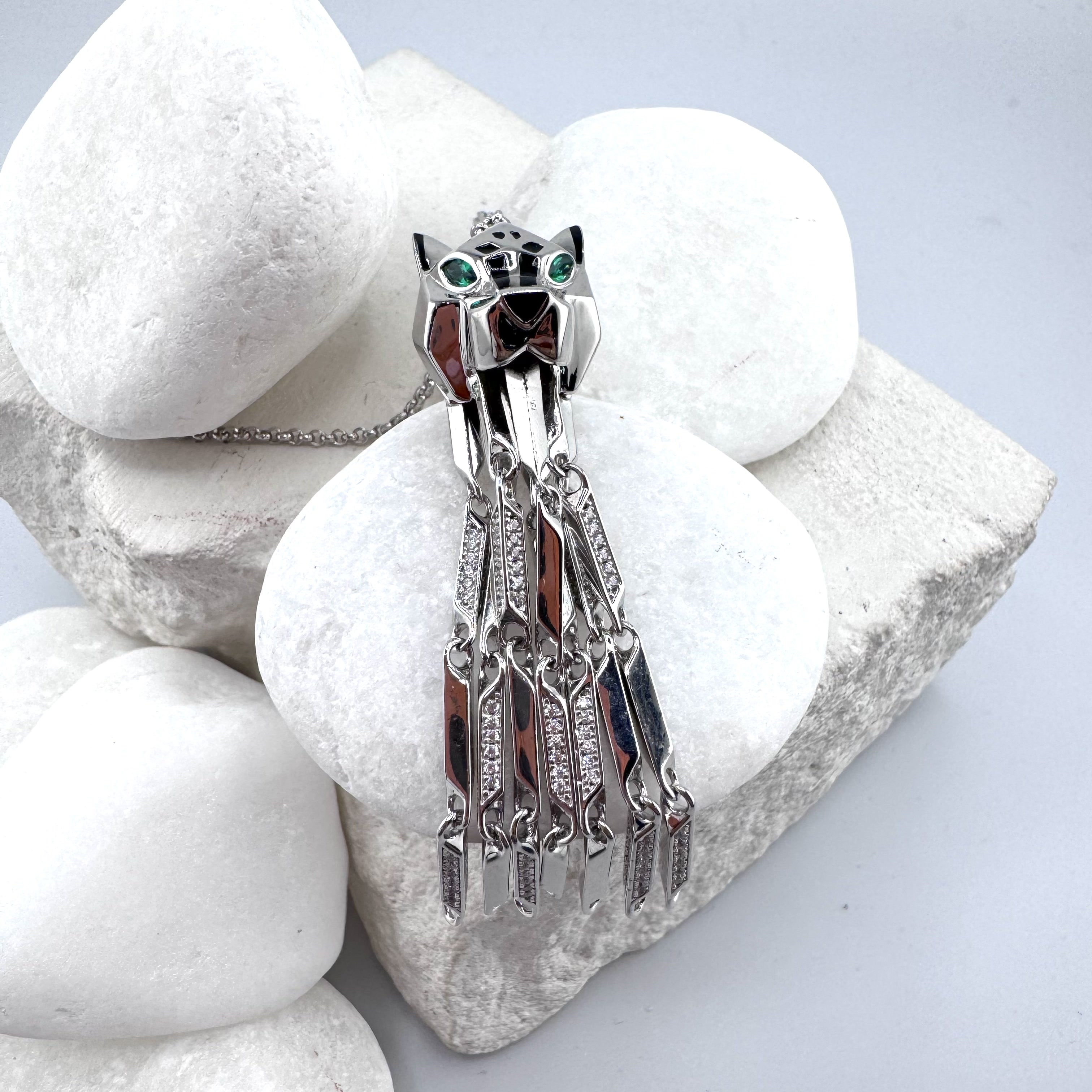 Колье "Пантера" с фианитами и эмалью из серебра 925 пробы арт. NK398