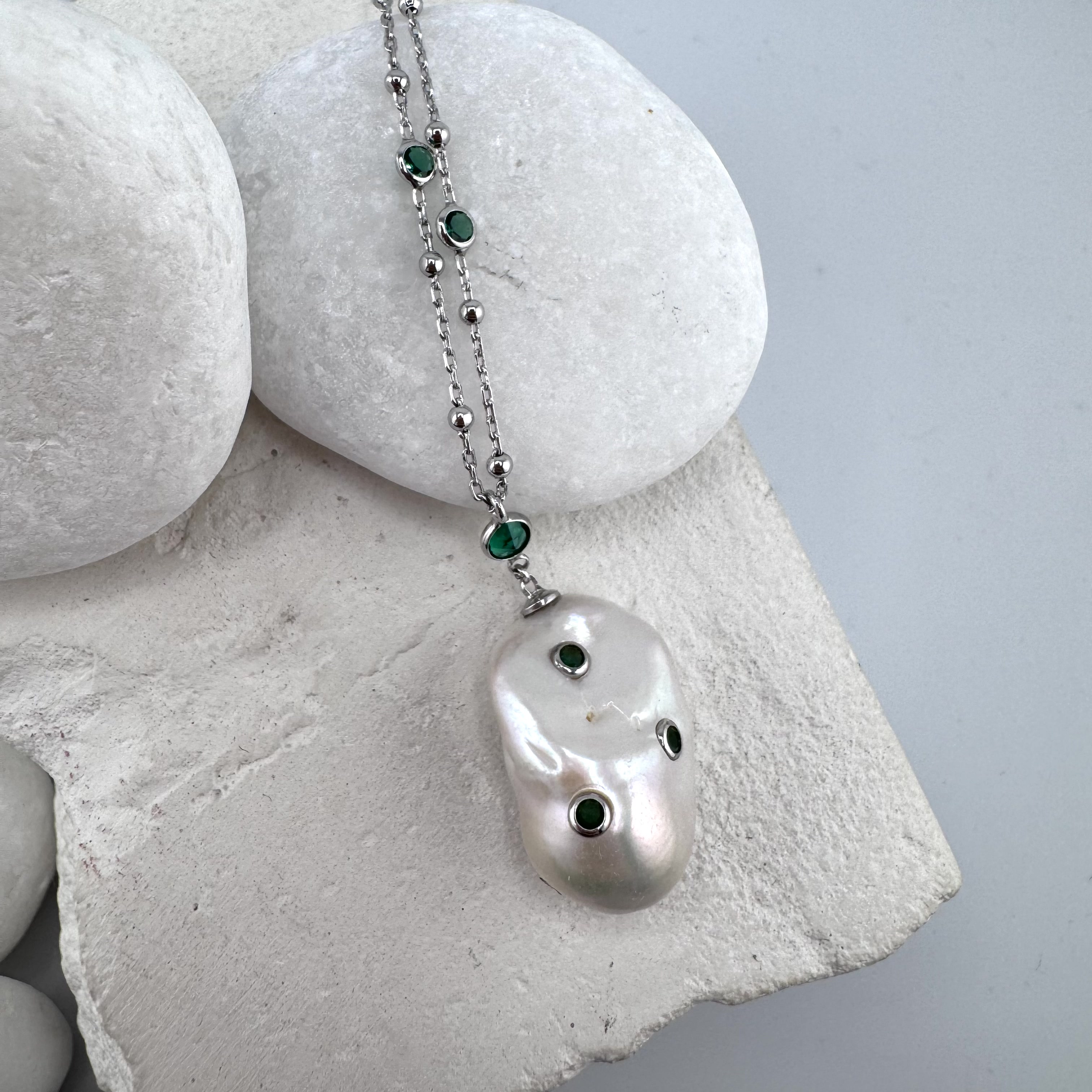 Колье с жемчугом и фианитами из серебра 925 пробы