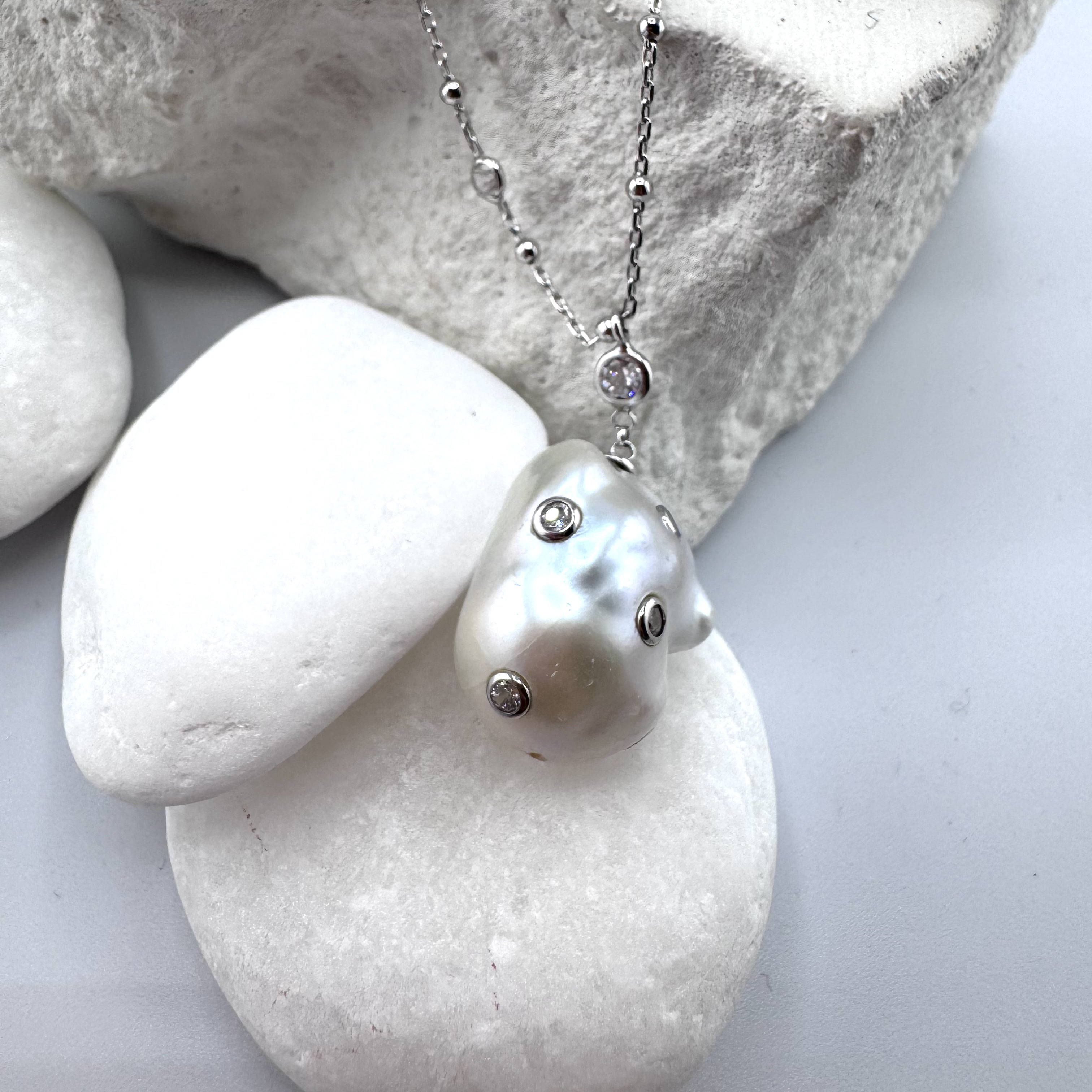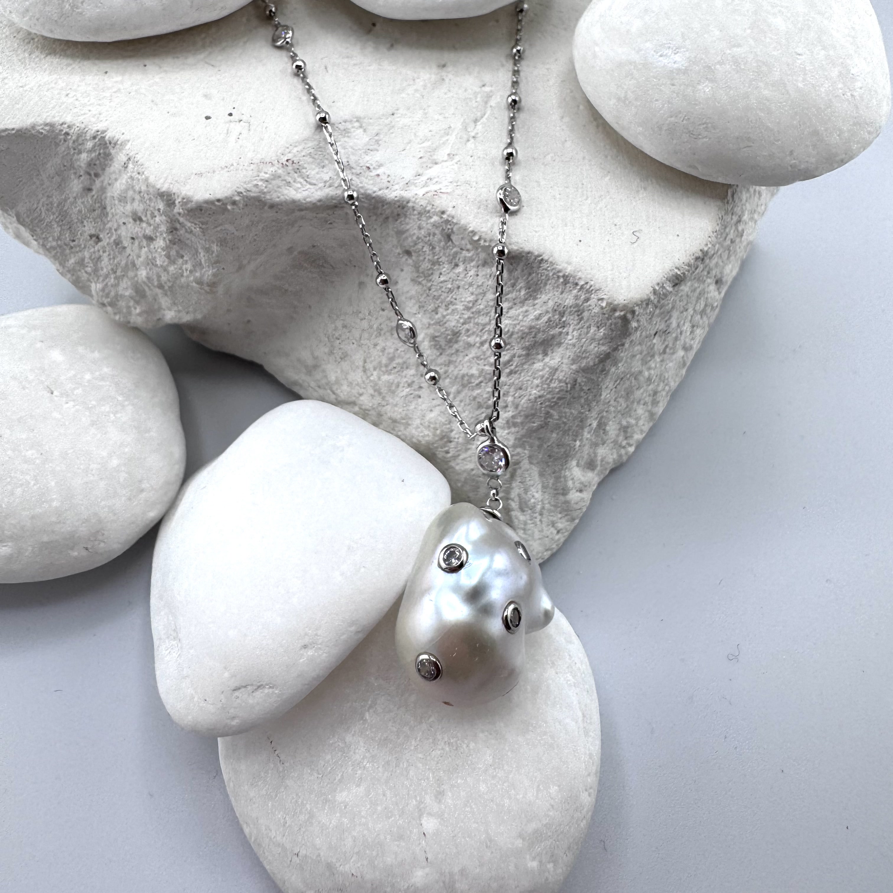 Колье с жемчугом и фианитами из серебра 925 пробы