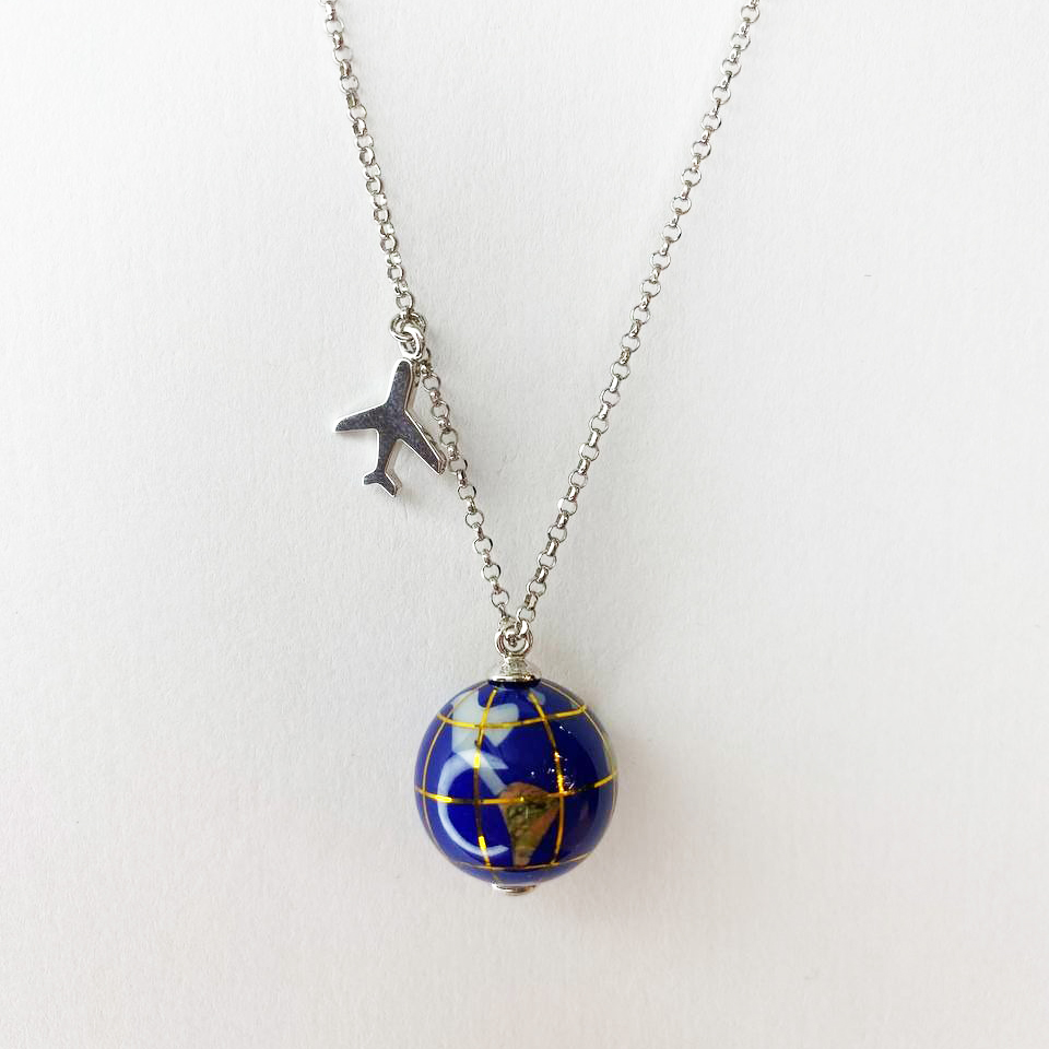Колье "Глобус" с лазуритом, перламутром и агатом из серебра 925 пробы