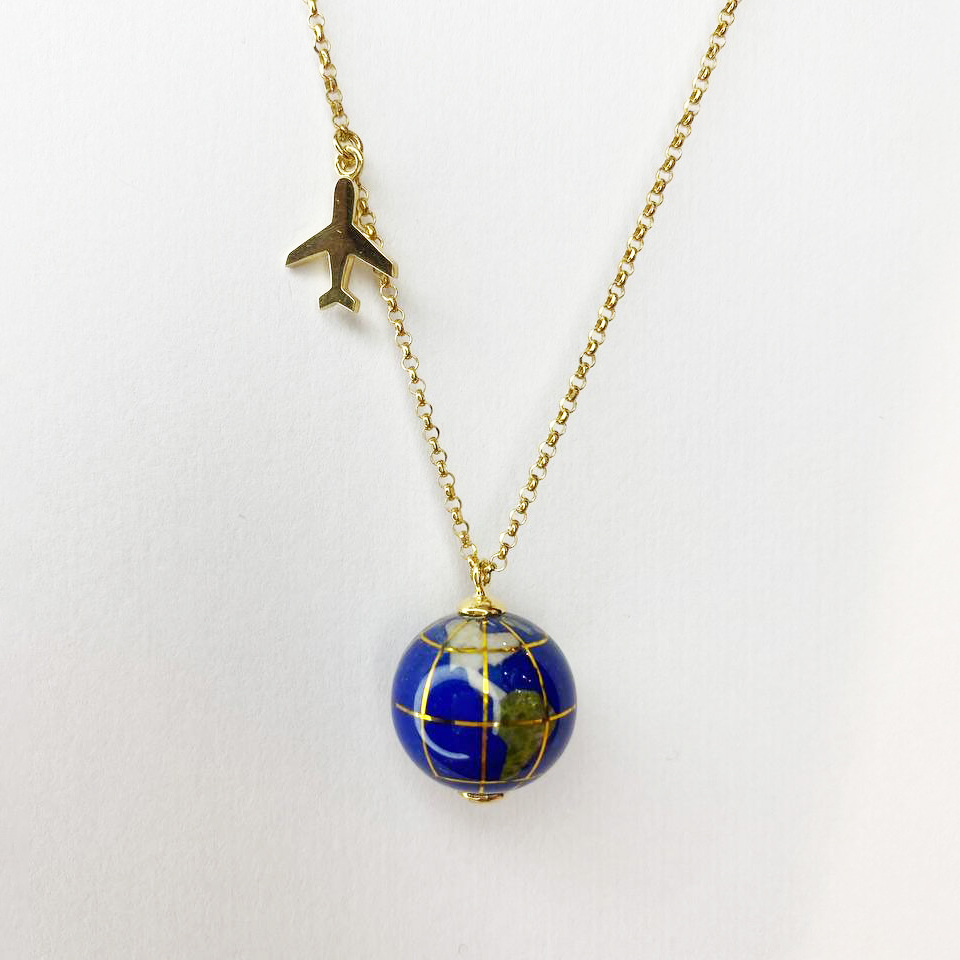 Колье "Глобус" с лазуритом, перламутром и агатом из серебра 925 пробы с позолотой