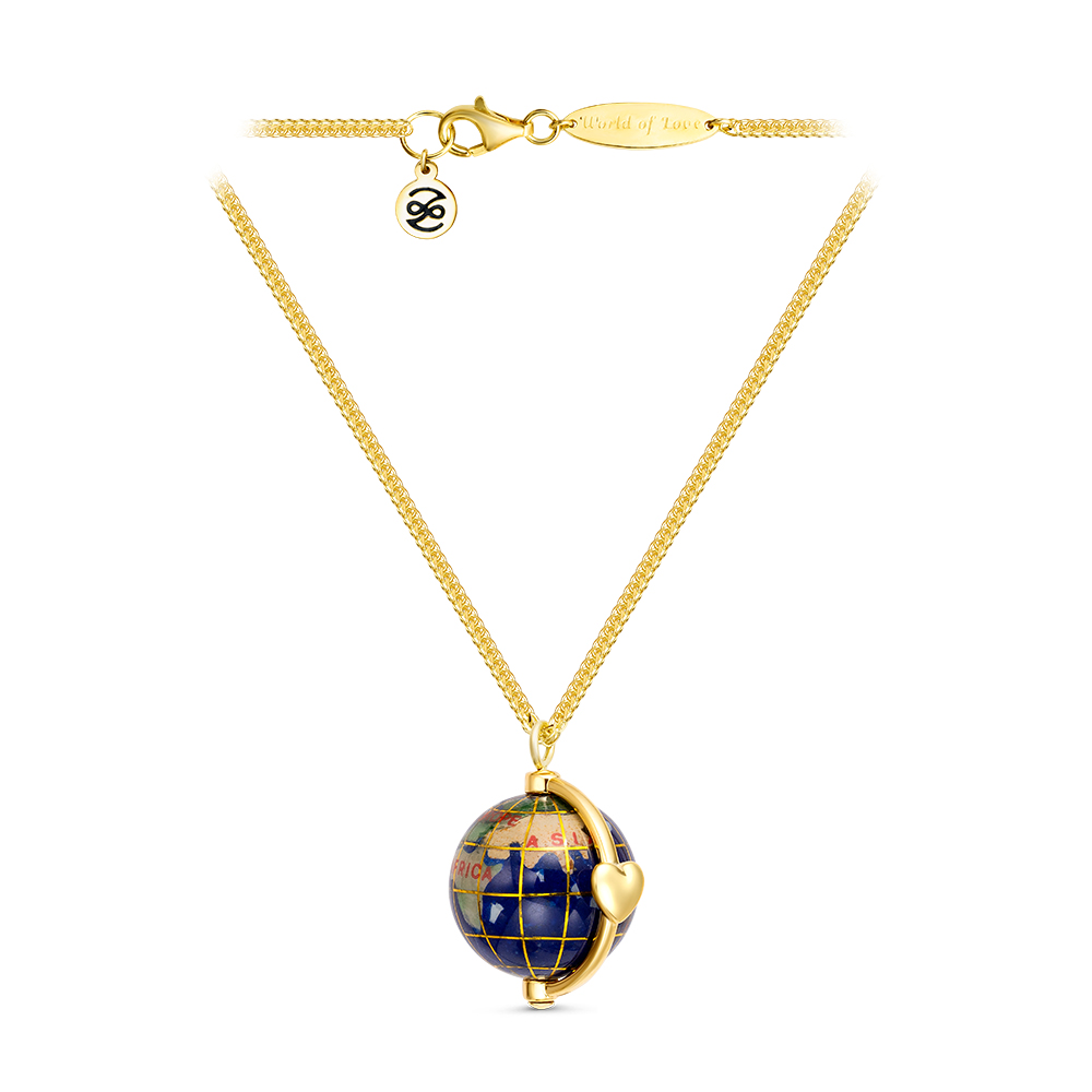 Колье "Глобус World of Love" с лазуритом, перламутром и агатом из серебра 925 пробы с позолотой