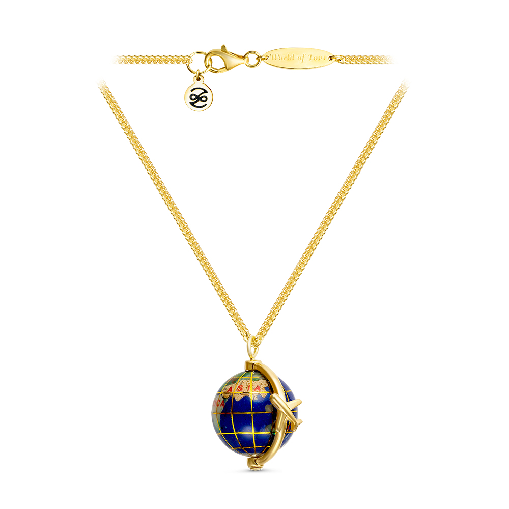Колье "Глобус World of Love" с лазуритом, перламутром и агатом из серебра 925 пробы с позолотой