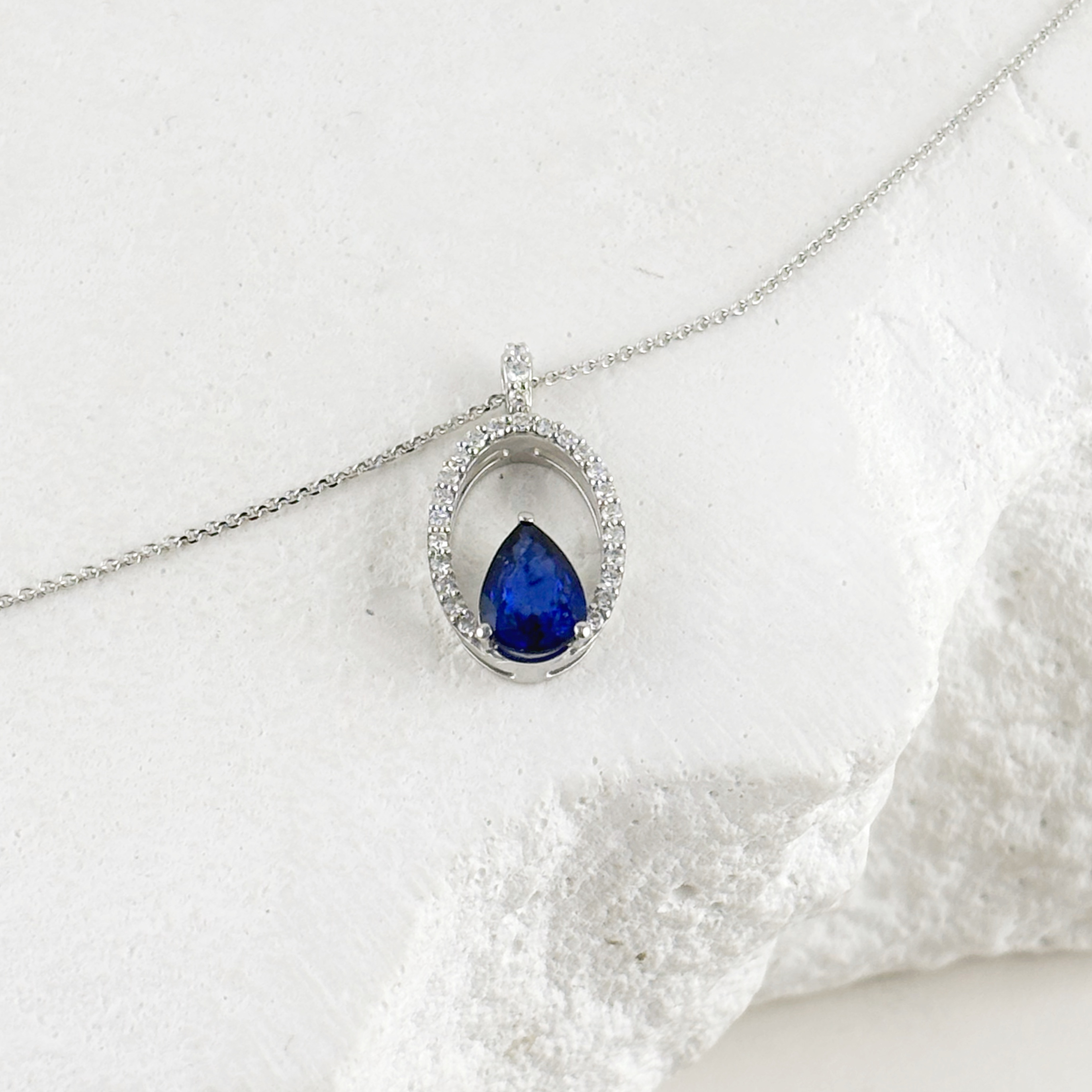 Колье с сапфиром и бриллиантами из белого золота 585 пробы