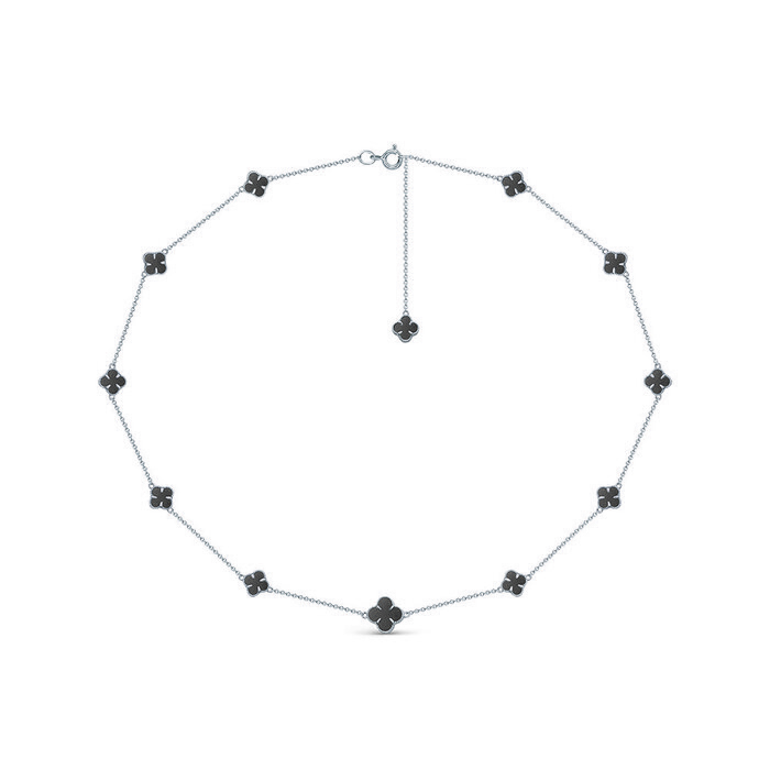 Колье "Клевера" с ониксом из серебра 925 пробы