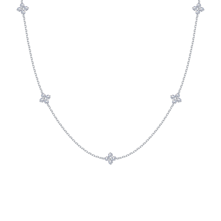 Колье "Цветы" с фианитами из белого золота 585 пробы