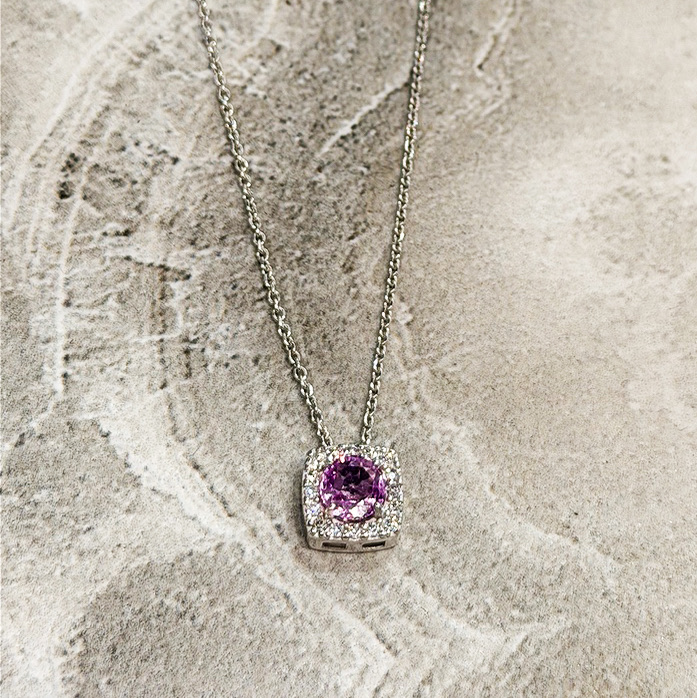 Колье с сапфиром и бриллиантами из белого золота 585 пробы