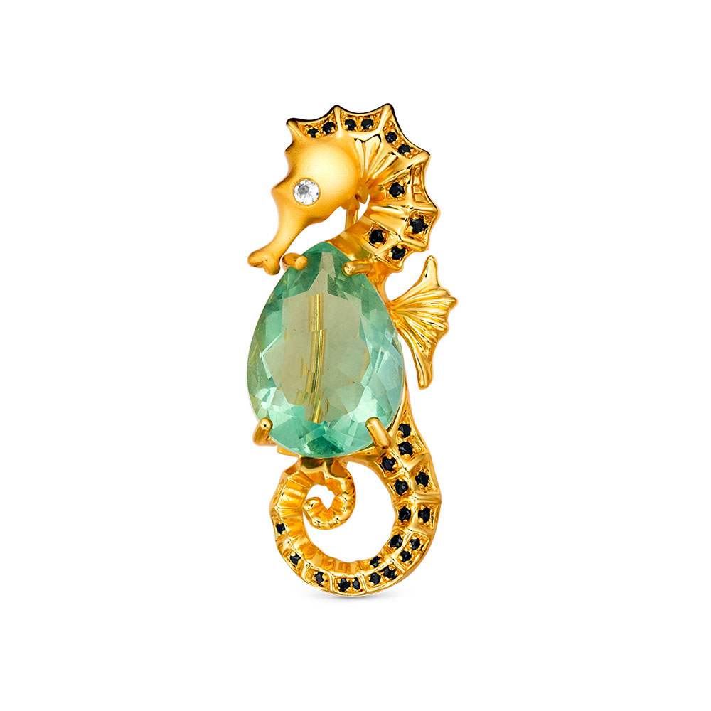 Брошь с флюоритом, топазами и шпинелью из серебра 925 пробы арт. KP0604_BRP_SP_YG