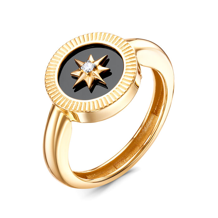 Кольцо с ониксом и фианитом из золота 585 пробы