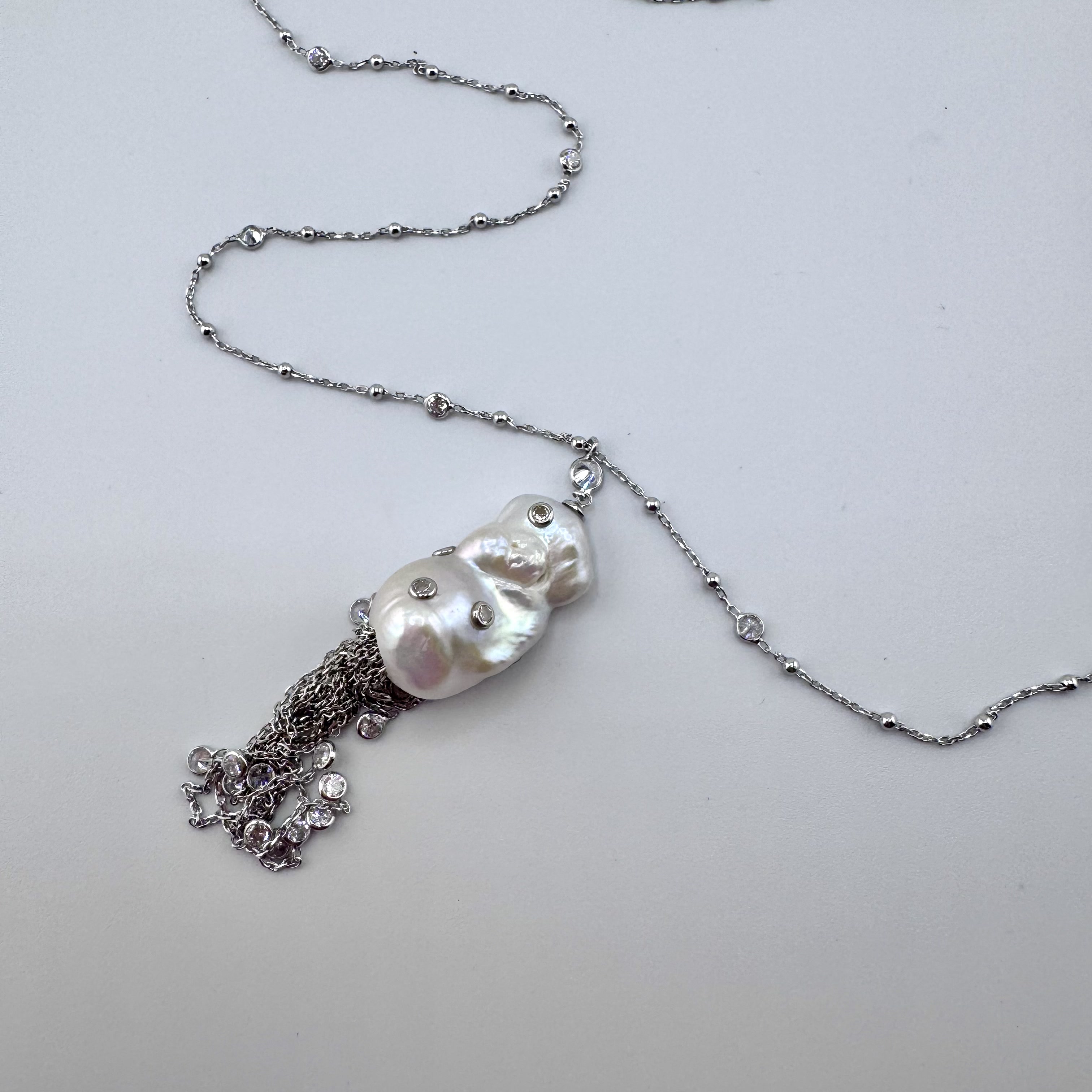 Колье с жемчугом и фианитами из серебра 925 пробы