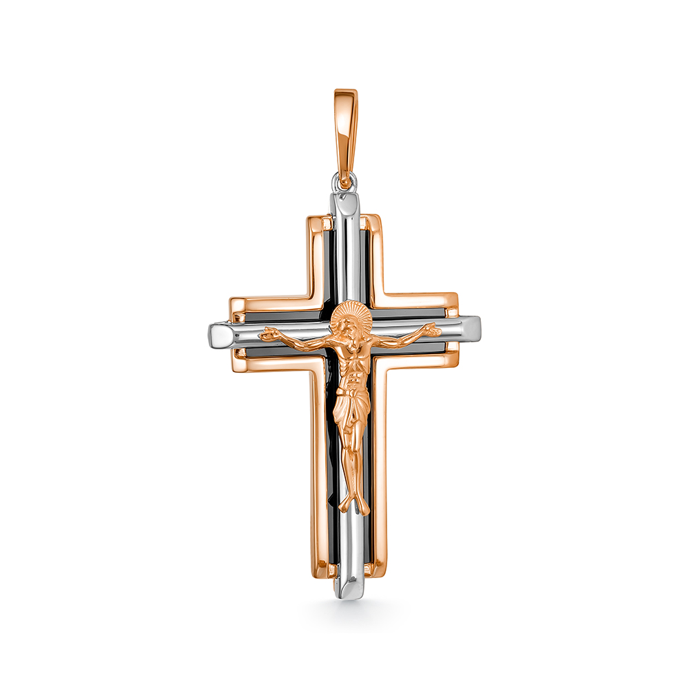 Крест православный с ониксом из золота 585 пробы арт. 080042