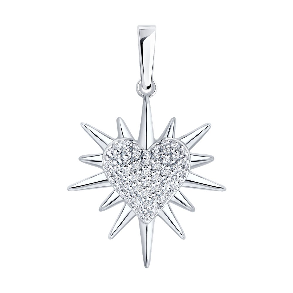 Подвеска "Сердце" с бриллиантами из белого золота 585 пробы арт. 1031004-3
