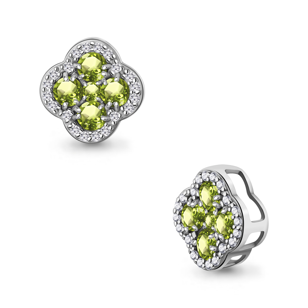 Подвеска "Клевер" с хризолитом и фианитами из серебра 925 пробы арт. 2546407А.5
