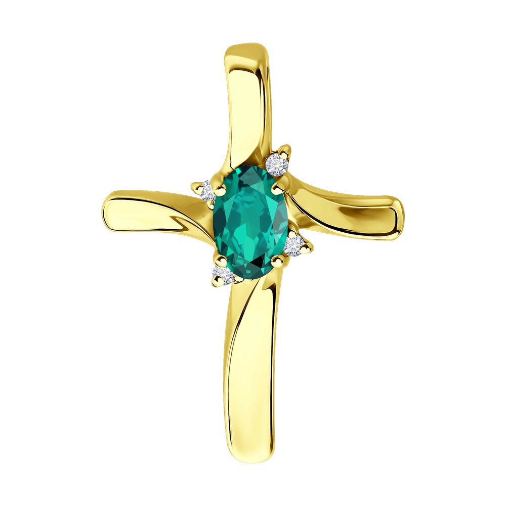 Декоративный крест с изумрудом и бриллиантами из желтого золота 585 пробы арт. 3030238-2