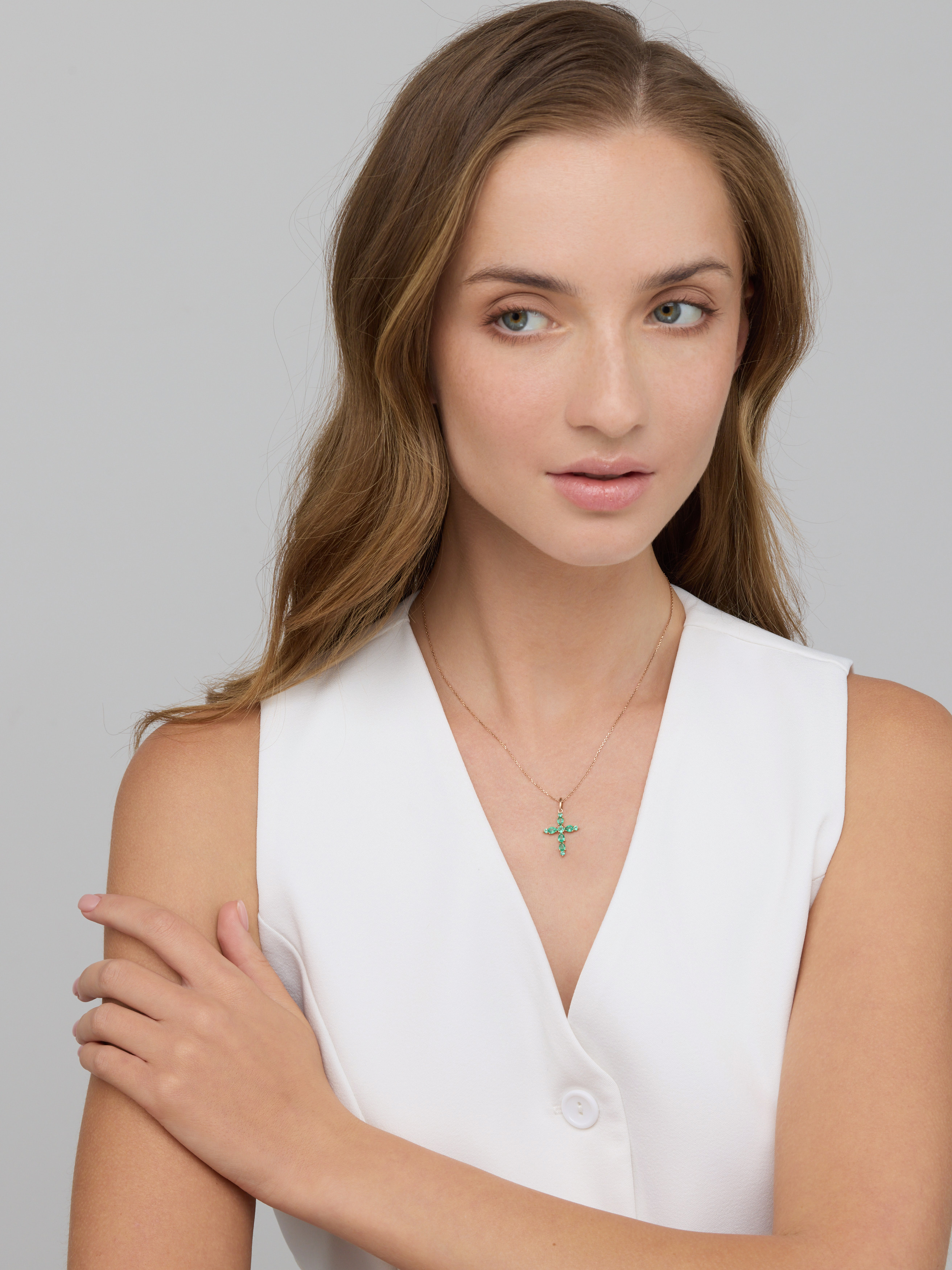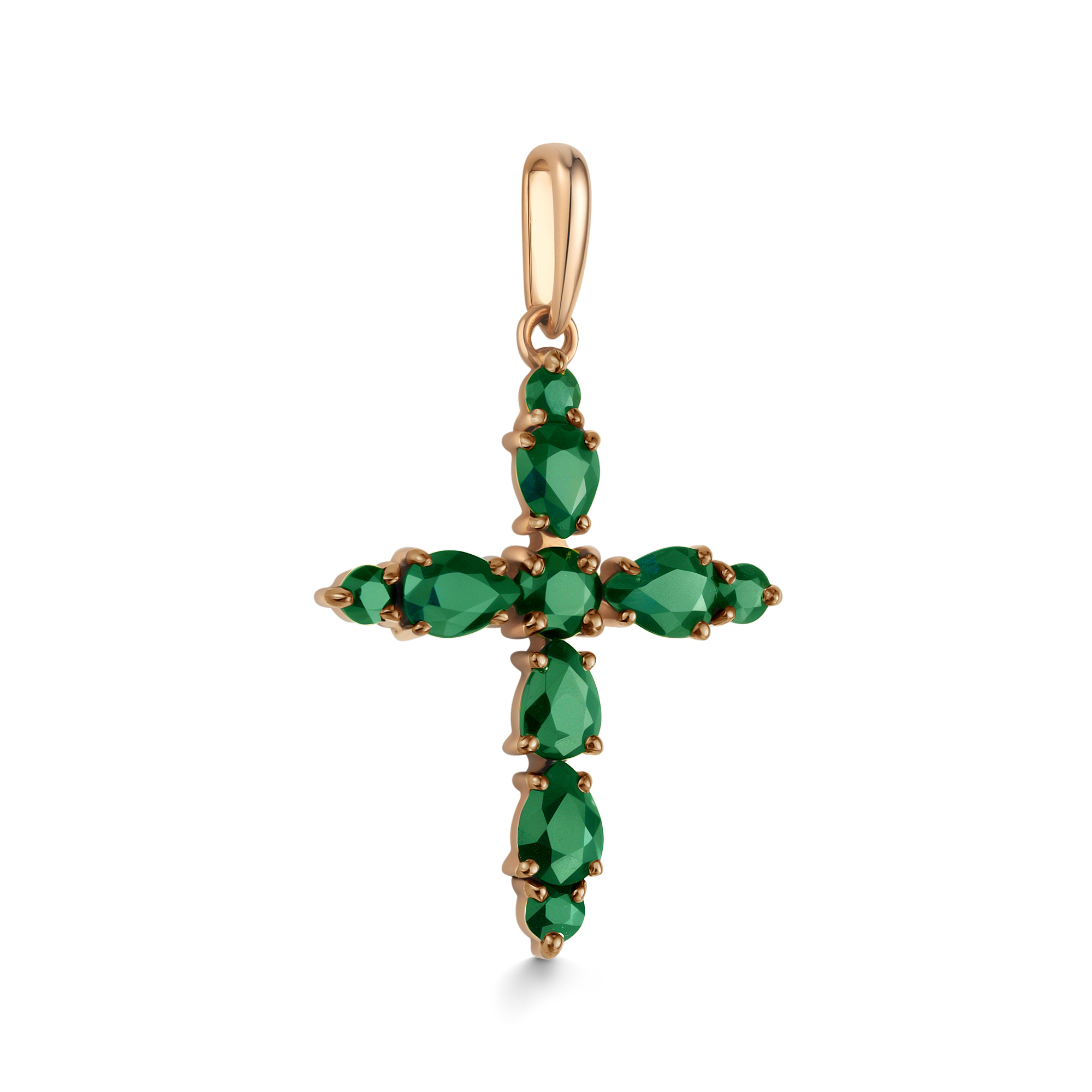 Декоративный крест с изумрудами из золота 585 пробы арт. 36243-101